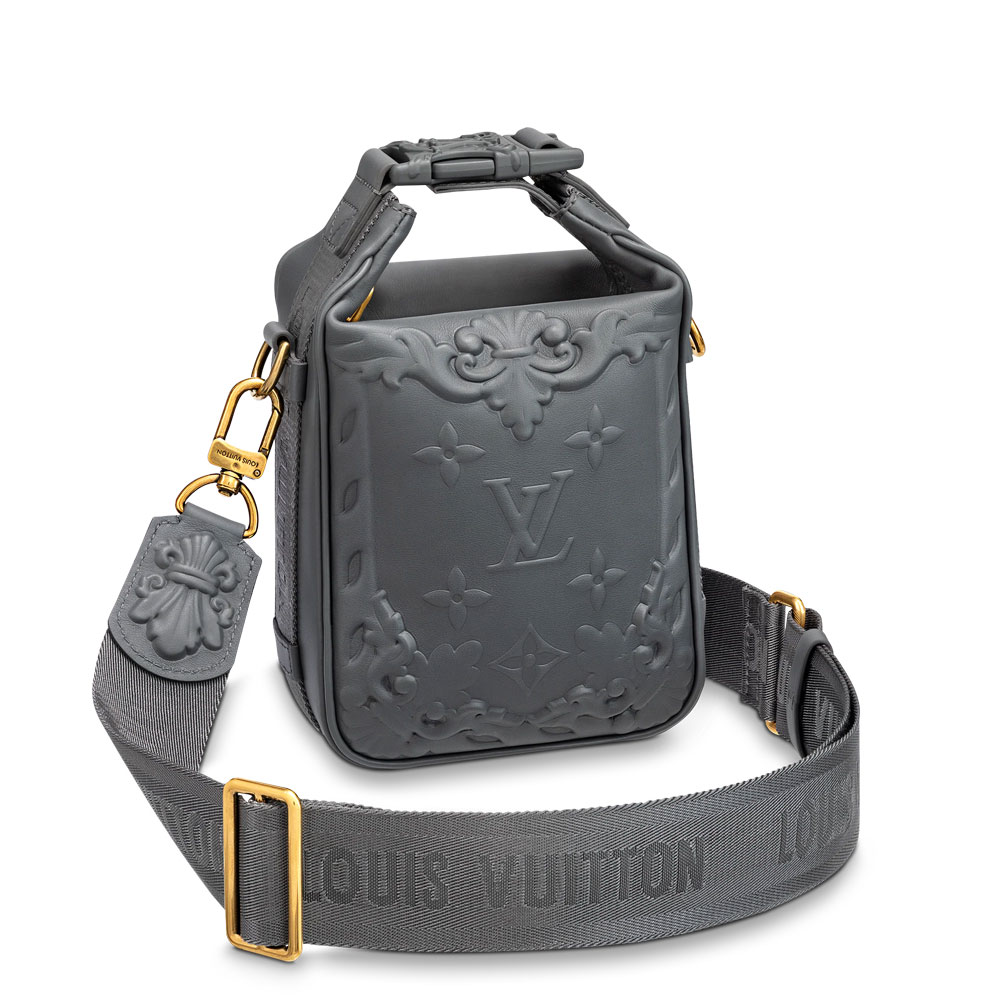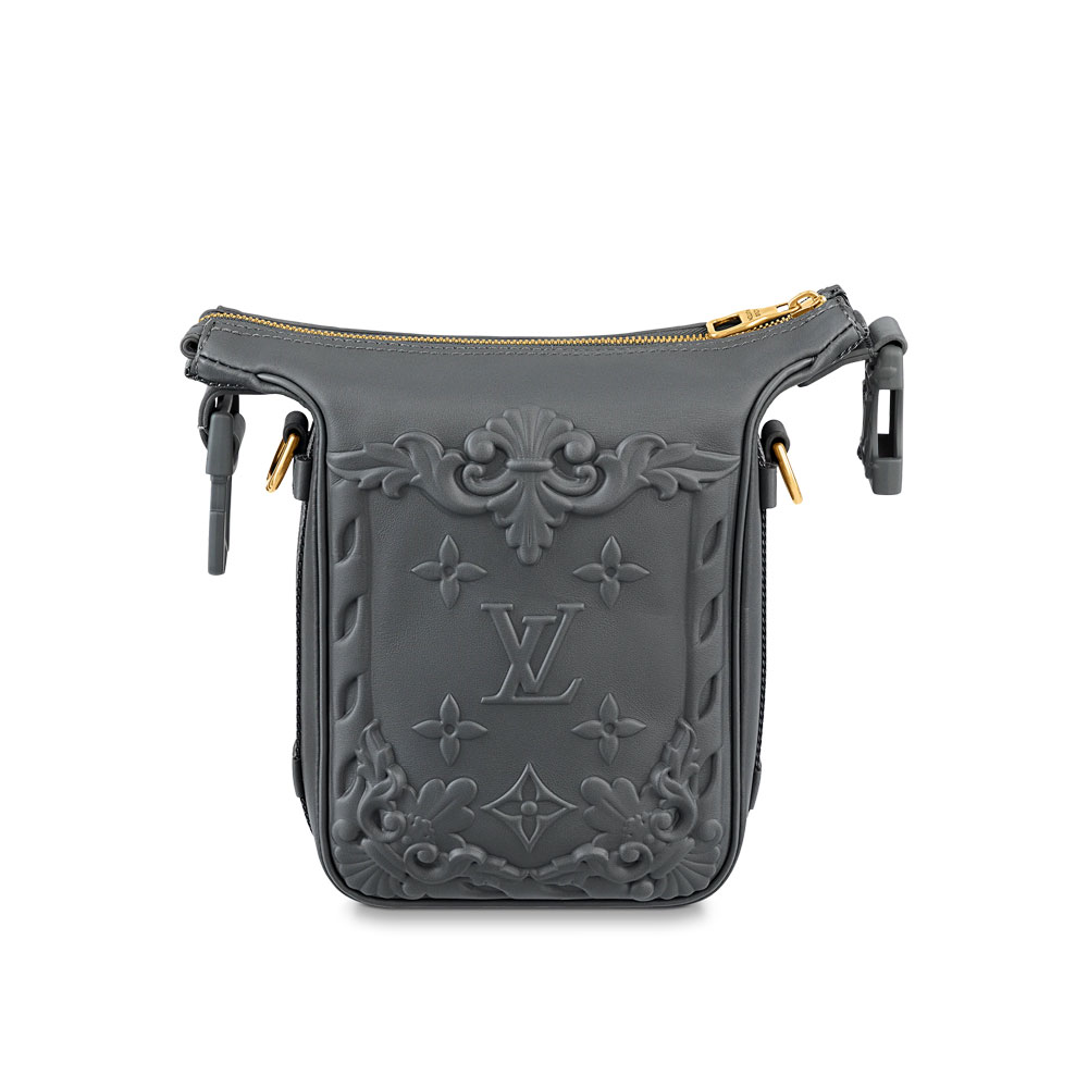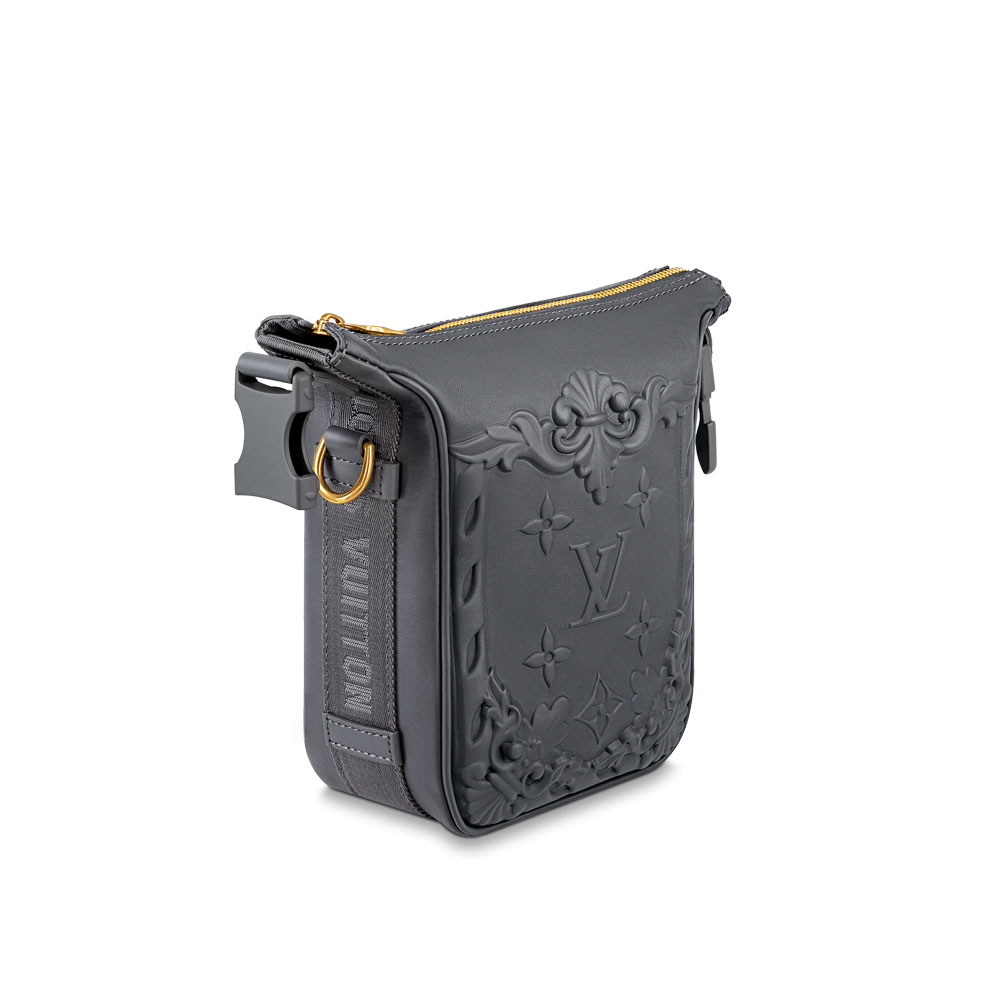 The worlds of luxury and streetwear come together in this Cruiser Messenger bag. Fashioned from calf leather. debossed with a pattern inspired by the decorative molding found in chateaus. it evokes Louis Vuitton's links to French romanticism. The wide adjustable shoulder strap and the top handle offer carry options.