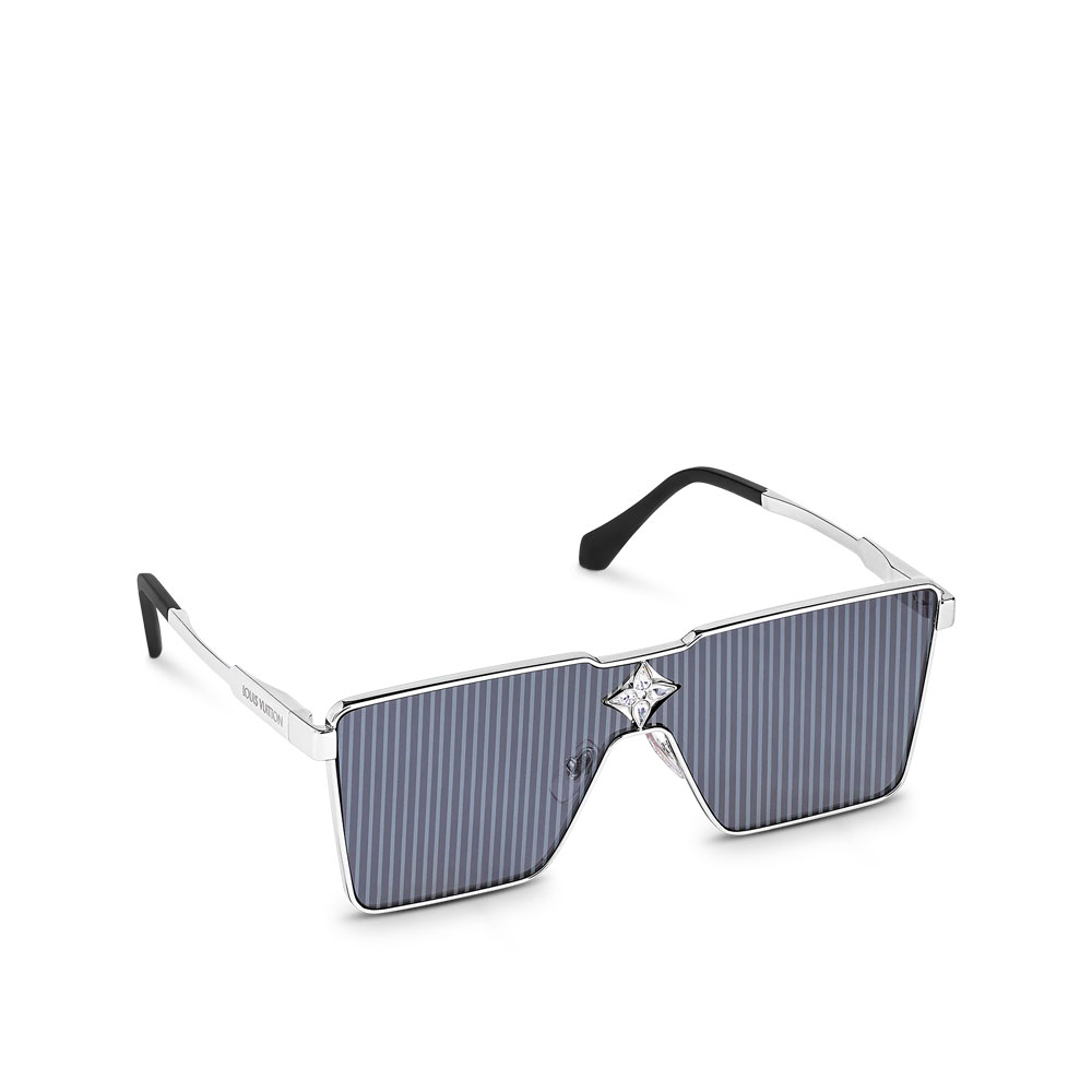 The Cyclone Metal Sunglasses have a sleek design with light-catching materials and finishes for a bold appeal. Gleaming vertical stripes line the lenses. which feature a crystal-like Monogram Flower on the bridge as a centrepiece. These elements are paired with thin metallic frames for a polished finish.