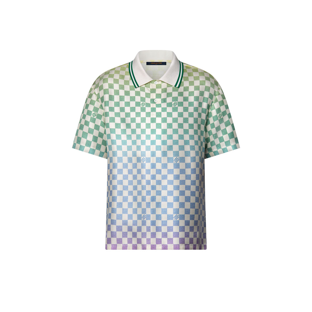Crafted from luxurious Louis Vuitton cloth material, this multicolored polo blends boldness and refinement. Pair it with slim-fit neutral trousers in black or beige to balance the vibrant Damier pattern. For a casual edge, layer over a plain white tee and add minimalist sneakers.