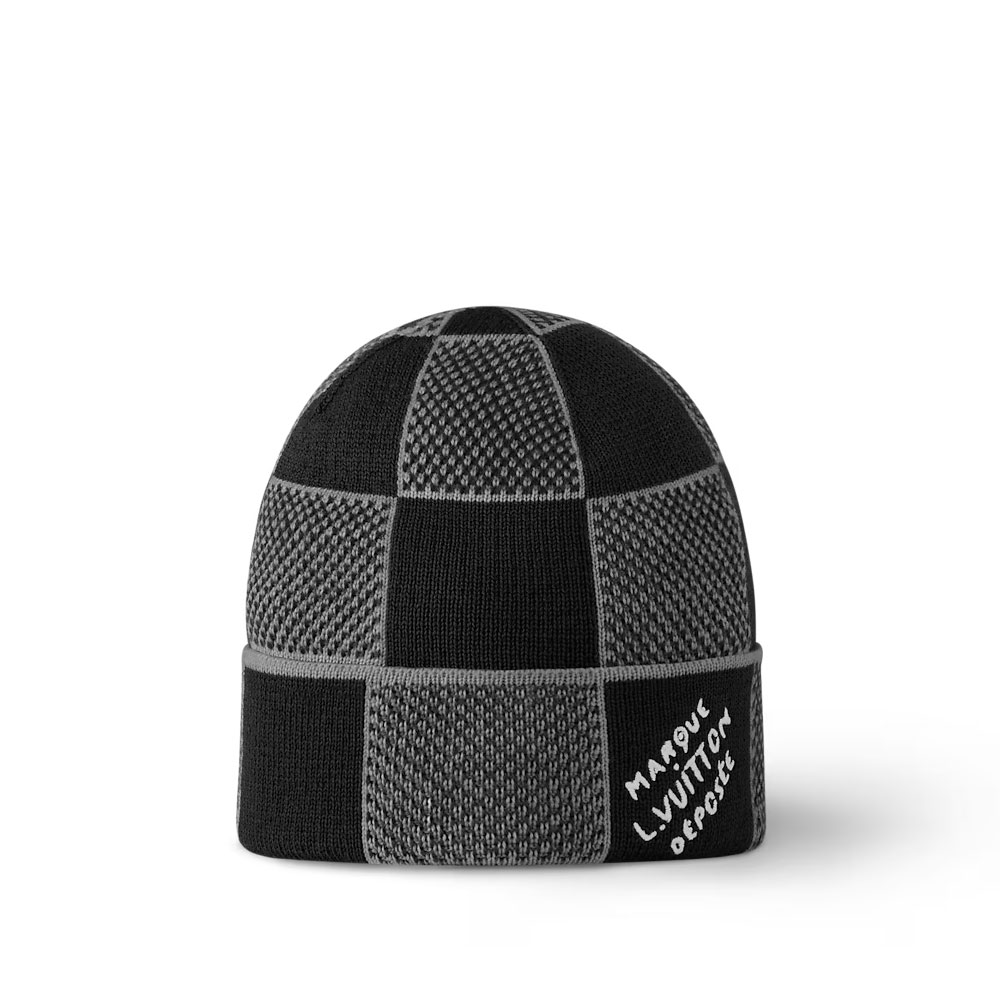 The Louis Vuitton Damier Heritage Beanie in black (M92737) is a versatile men's accessory that elevates casual and smart-casual looks.