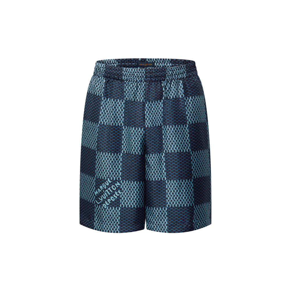 Experience Louis Vuitton Damier Silk Shorts: These flowing shorts feature the iconic Damier pattern with subtle L.Vuitton logos.