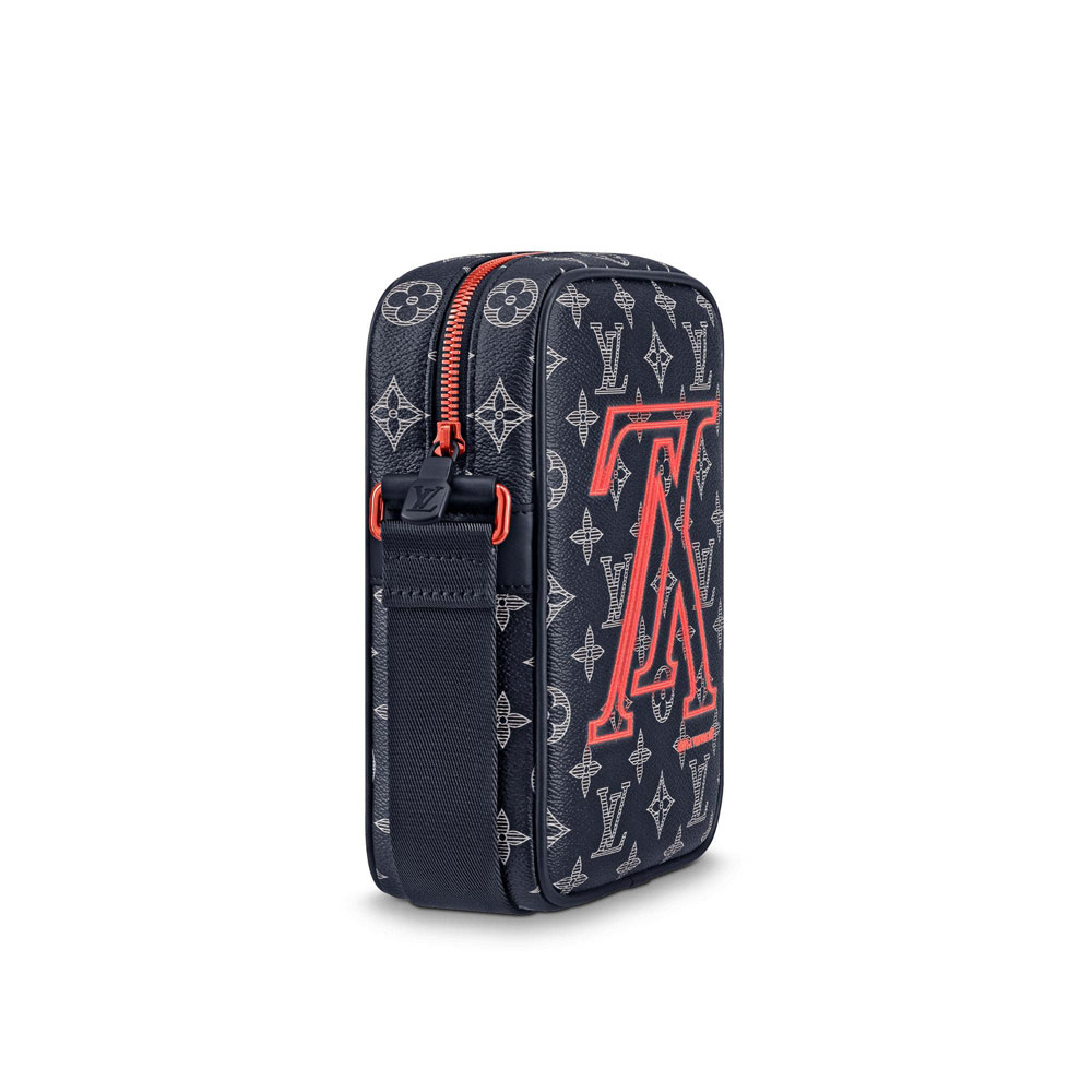 Upside-down, these LV Initials are a hallmark of the Men's 2018 Fall Pre-collection. Designed by Kim Jones the bold pink logo emblazons this Danube PM city bag, crafted of Monogram Ink canvas. Compact, yet roomy enough for essential belongings, it features an adjustable strap for shoulder- or cross-body wear.