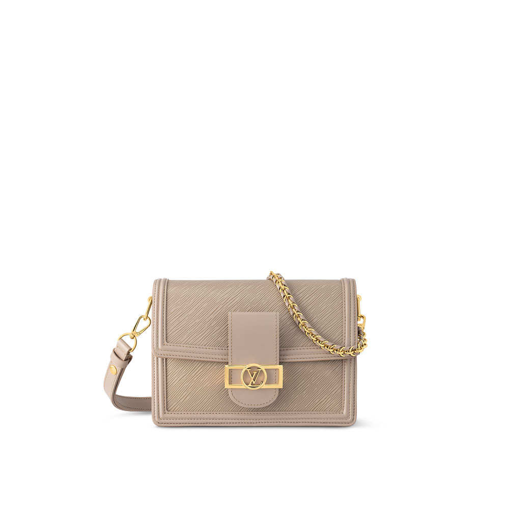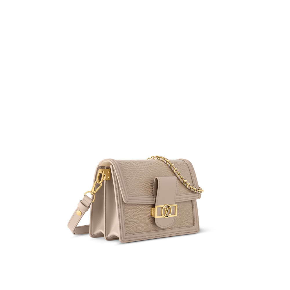 The Dauphine MM handbag is made from Epi leather with gold-color hardware, including its golden LV Circle in a rectangle signature magnetic lock. The embossed pattern on the Epi leather is highlighted by the trim in smooth cowhide. The detachable and adjustable leather smart strap and braided chain allow different carry options and attitudes.