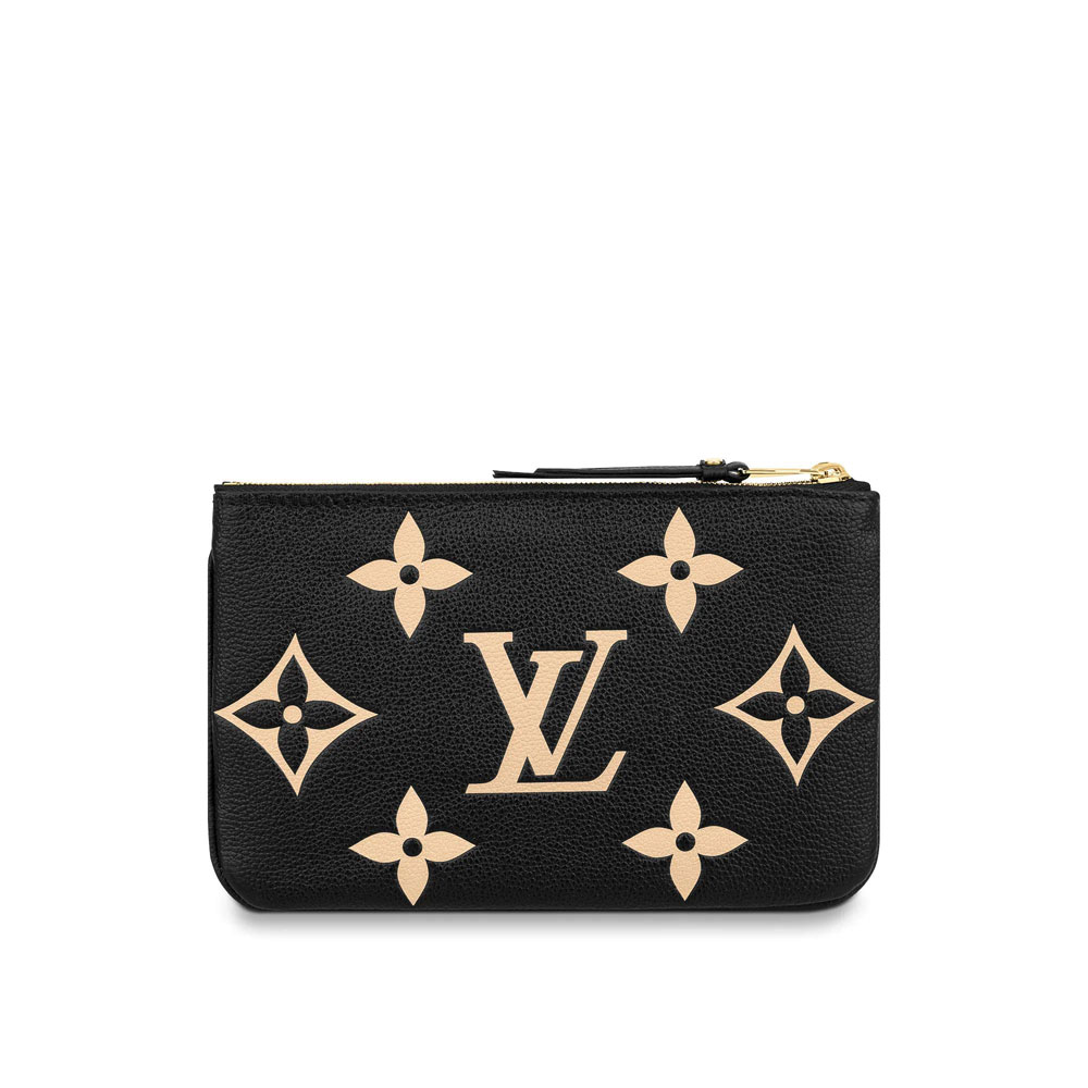Carried by hand or worn cross-body. the Double Zip Pochette is a stylish and practical accessory. This edition in Monogram Empreinte leather is embossed with a contrasting Monogram Medium motif. for a signature fashion statement. The pouch features two zipped pockets for smartphones and valuables. along with an open central compartment for direct access to essentials.