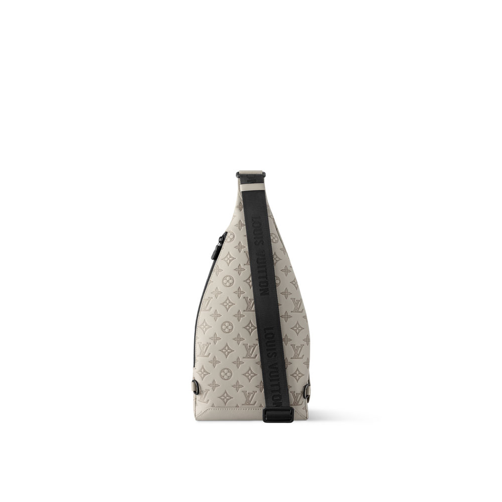 The Monogram Shadow embossed calfskin adds a refined touch to the unique Duo Slingbag.