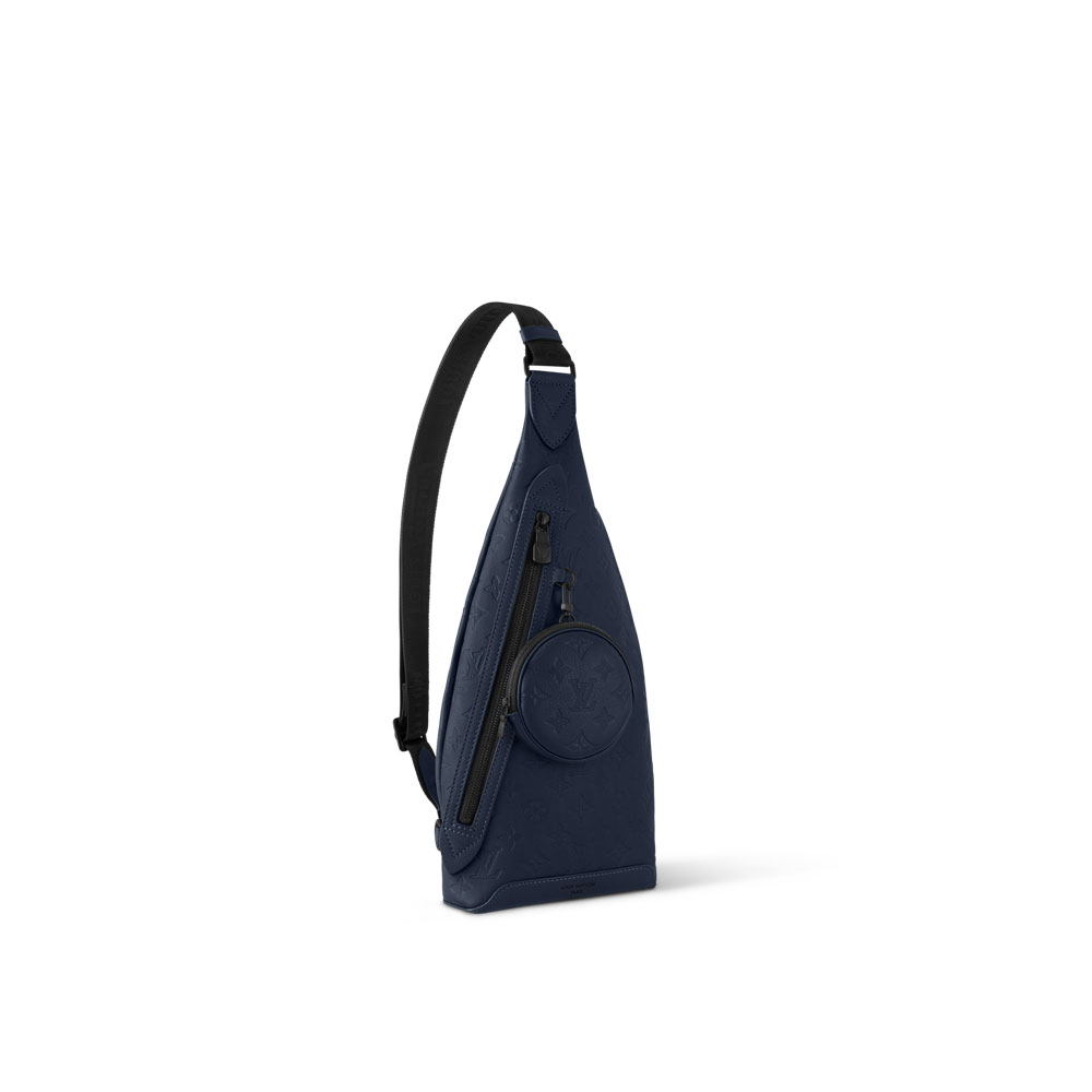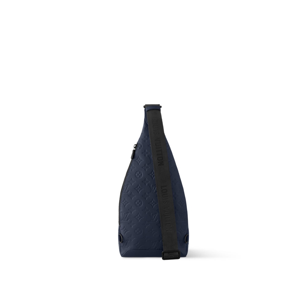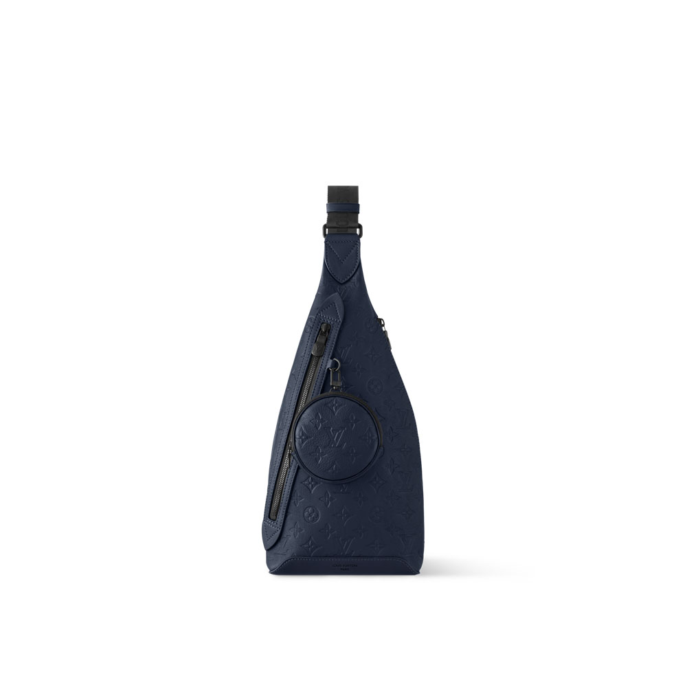 Explore the Louis Vuitton Duo Slingbag: Monogram Shadow textured leather adds sophisticated style to this unique bag.