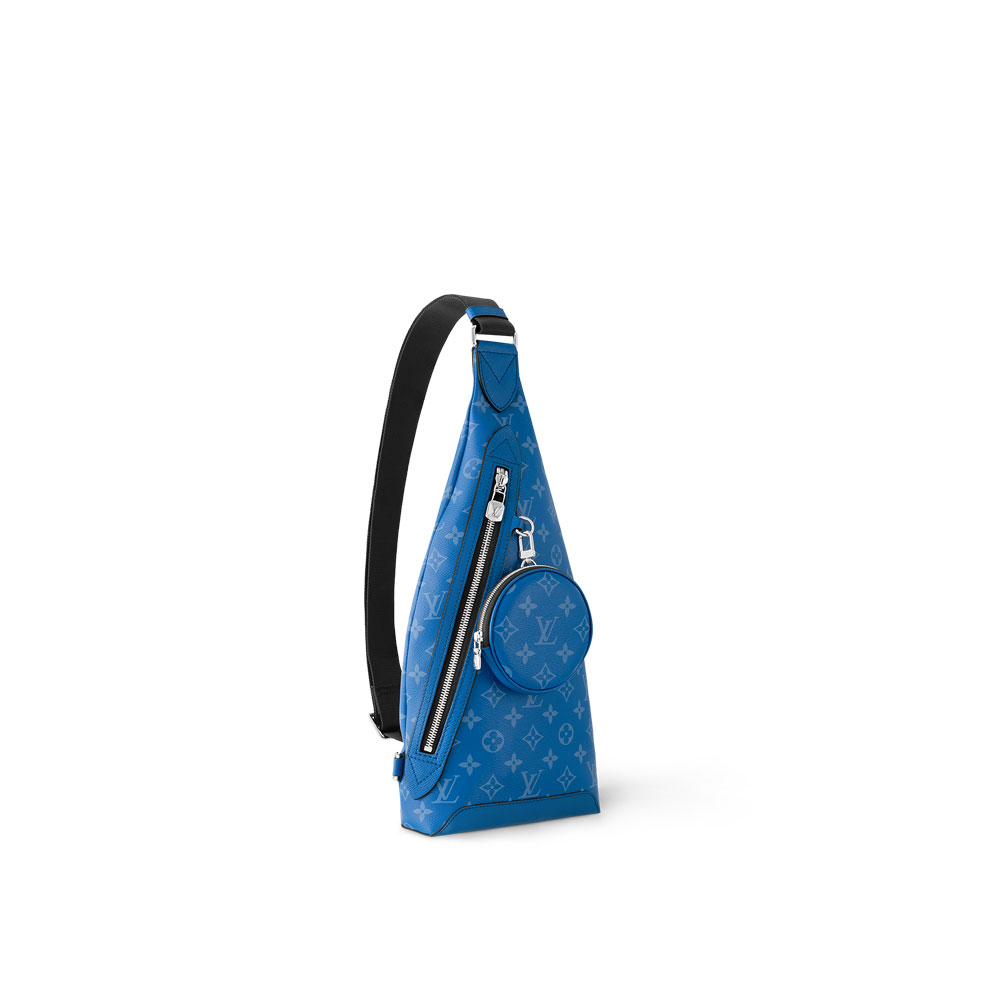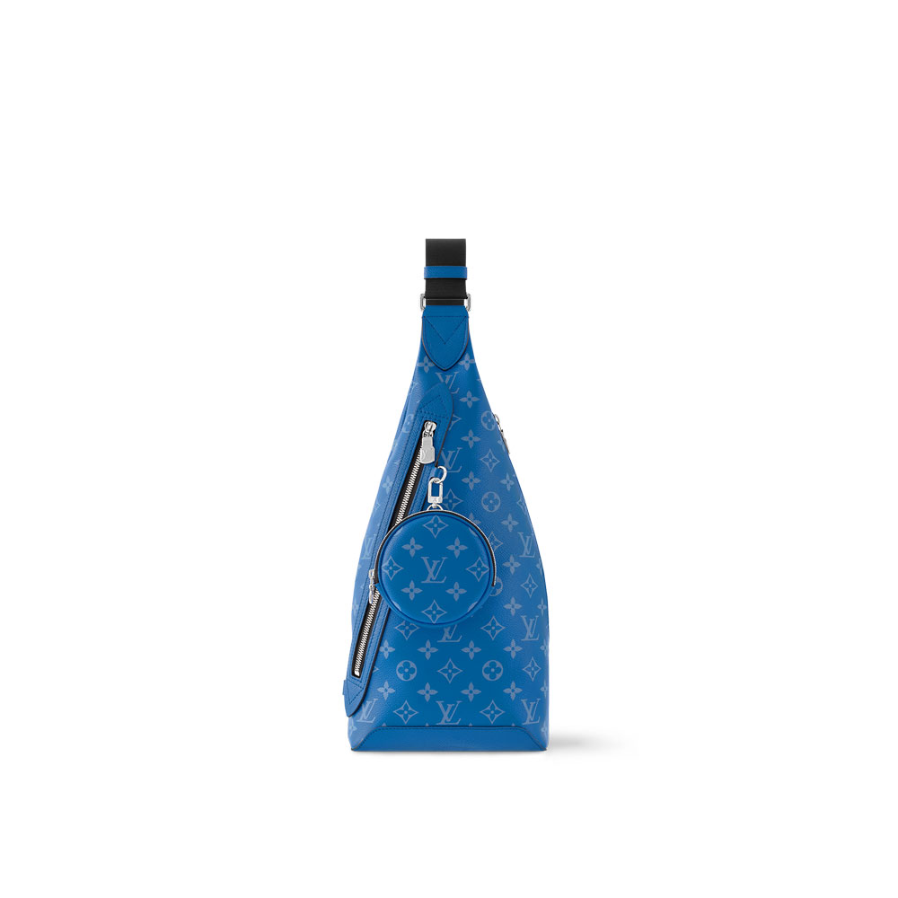 The Taigarama version of the sporty Duo Slingbag comes in an eye-popping new colour for 2024. Finely embossed Taiga leather is combined with the Houses historic Monogram canvas in a bold, playful shade of blue. A cool and casual alternative to a backpack, it features a removable pouch, ideal for keys, coins and other small personal items.