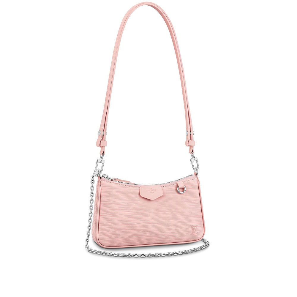 The Easy Pouch on Strap is a sleek design in grained Epi leather. discreetly embossed with the LV Initials. Large enough to hold everyday essentials. this on-trend model is notable for its versatility. featuring a removable chain and a removable. adjustable leather strap for shoulder or cross-body carry. The D-ring on the outside can be used to attach a charm.