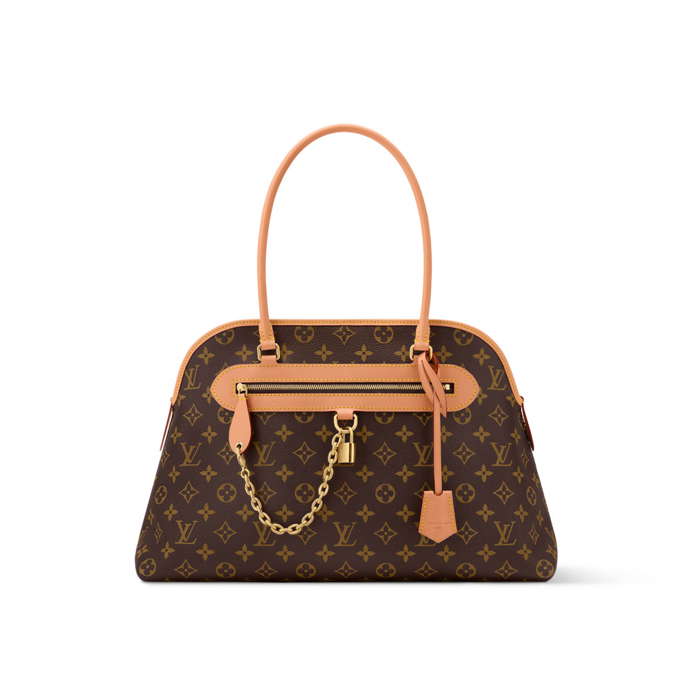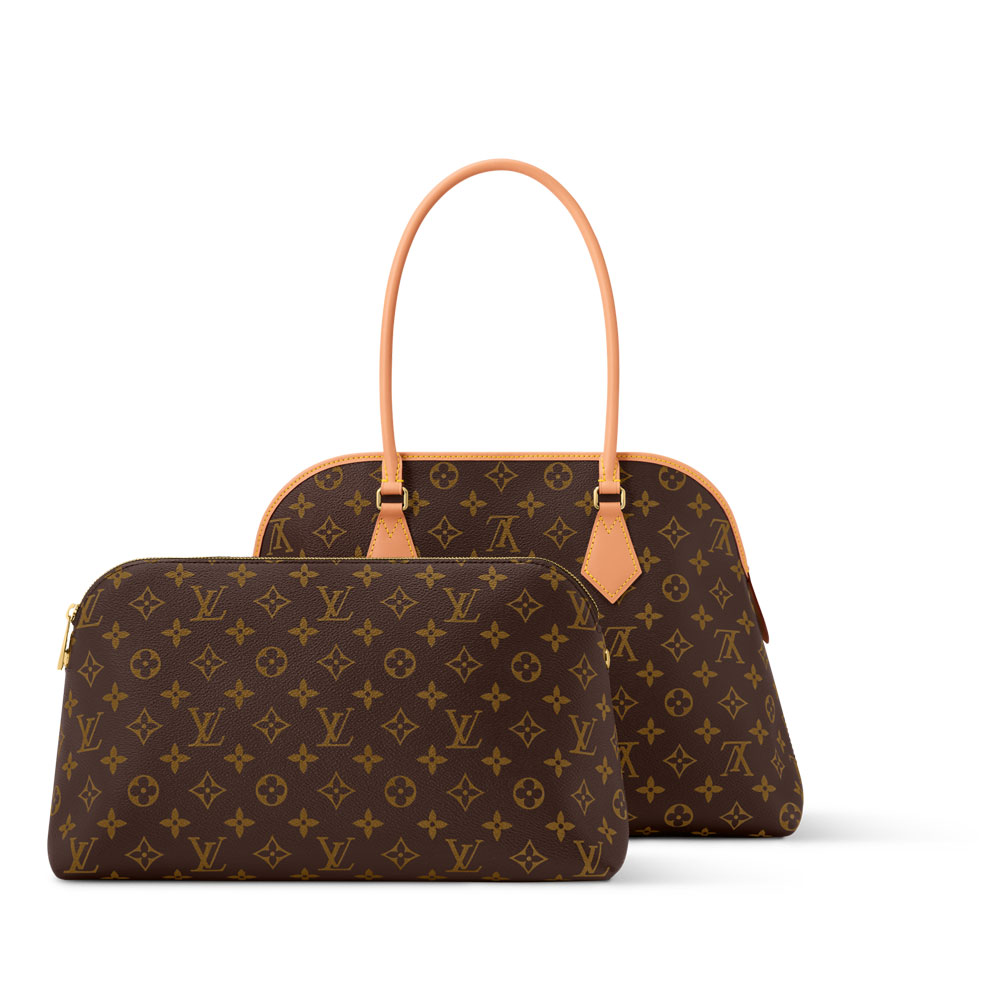 The neutral Monogram canvas contrasts beautifully with bold colors like deep red or soft pastels. Its detachable pouch adds versatility, making it ideal for both casual errands and formal occasions.