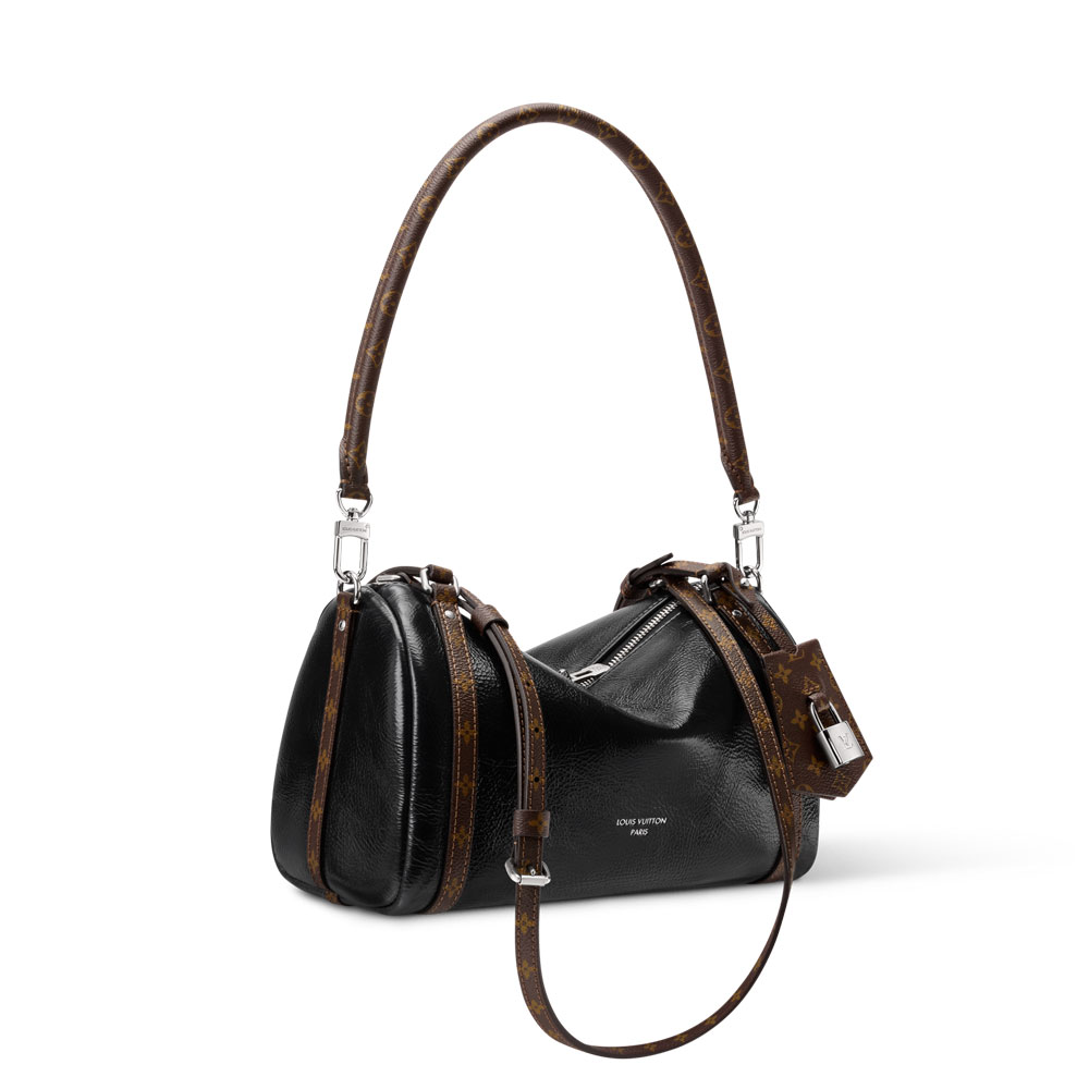 Meet the chic Louis Vuitton Express PM in classic Black. This stylish bag features the brand's signature Monogram Saga design with rock-inspired accents. Made from luxurious calfskin leather enhanced with cowhide trims, it opens to reveal elegant Monogram cotton lining.