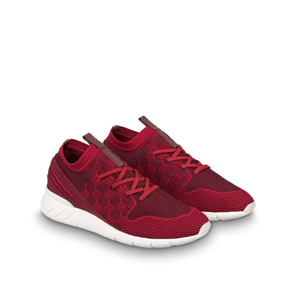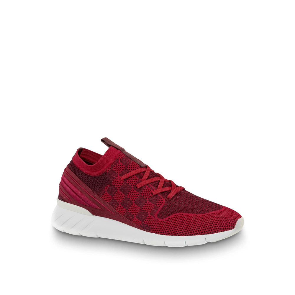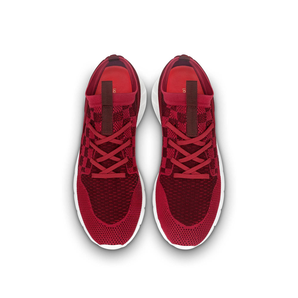 The Fastlane sneaker is crafted from a technical knit fabric woven with Louis Vuitton's iconic Damier pattern. This model is characterized by its exceptional comfort and supple. lightweight rubber outsole. It features a Louis Vuitton ribbon on the upper and a V signature on the back.