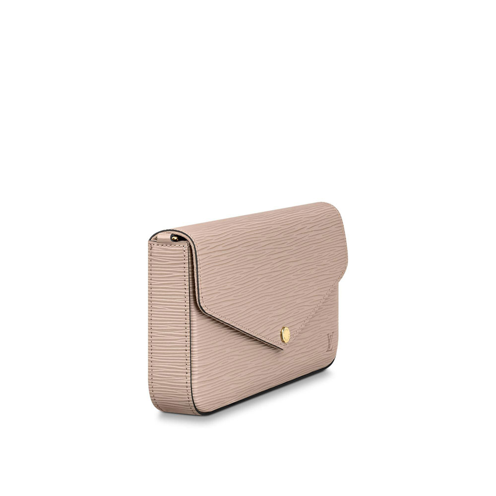 Louis Vuitton's emblematic Epi leather complements the simple yet elegant design of the Pochette Felicie. This envelope-style pouch. which contains two removable pockets. adapts to every occasion. Thanks to a removable silver-tone chain. it also offers a variety of carry options: on the shoulder. across the body or in the hand.