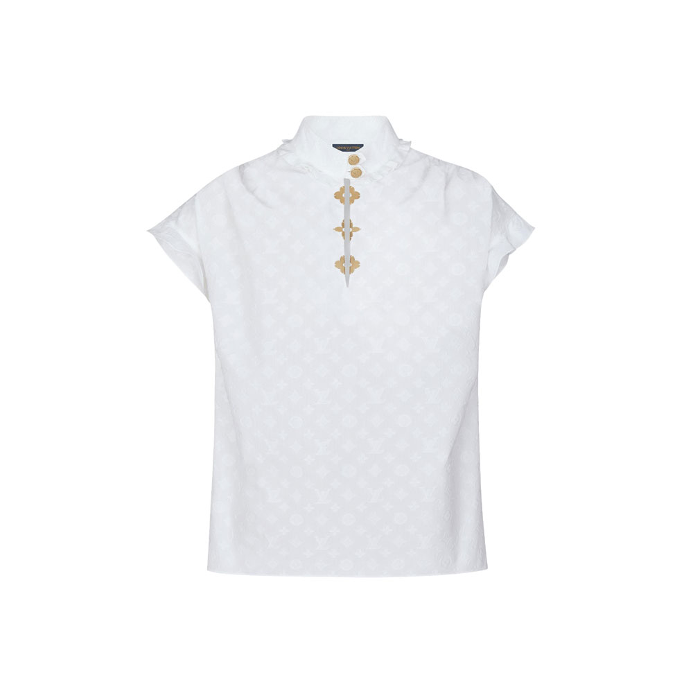 Louis Vuitton Frill Blouse in White 1A5M05 effortlessly elevates feminine sophistication.