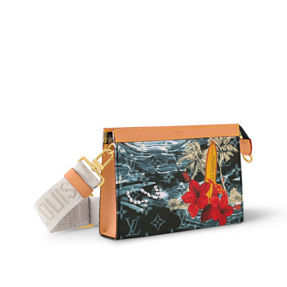 Made from summery Monogram Surfin canvas with Pharrell Williams print combining several colourful patterns, the Gaston Wearable Wallet is a compact bag with a removable card holder on the strap. Large enough for a smart phone and compact wallet, its zip closure keeps items secure. The removable strap adjusts for shoulder or cross-body carry.