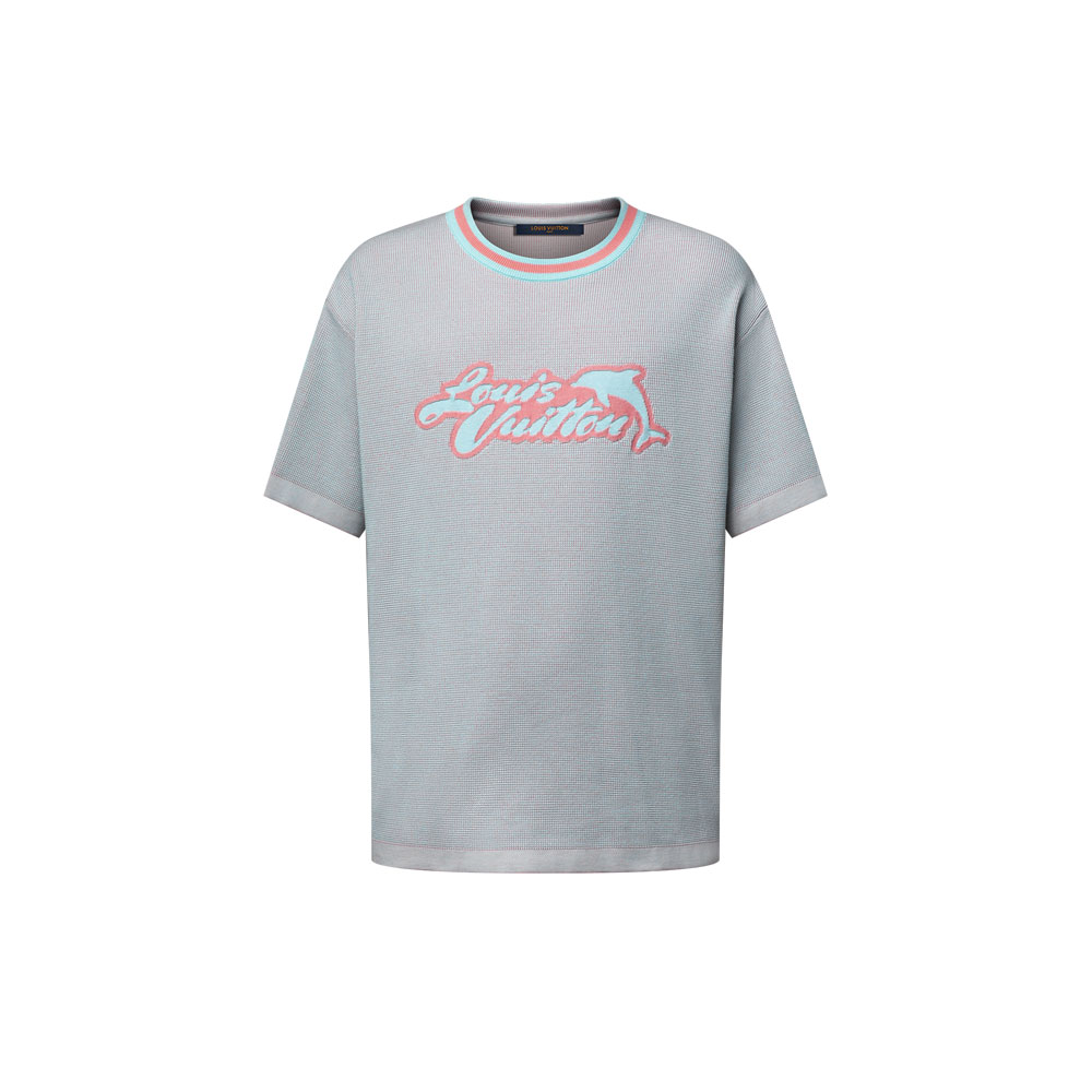 This breezy short-sleeve shirt features playful LV Dolphins embroidery in vivid coral and aqua shades.