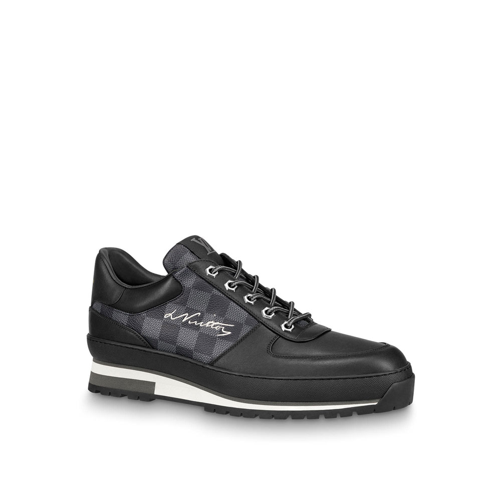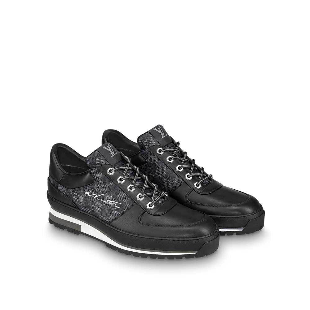 In a combination of natural calf leather and iconic Damier canvas. the Harlem Sneaker is signed with a cursive �L. Vuitton� embroidered on the side. Its two-color rubber outsole makes it instantly recognizable while the padded ankle and tongue bring comfort.