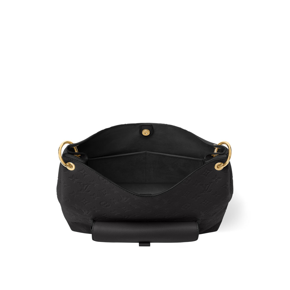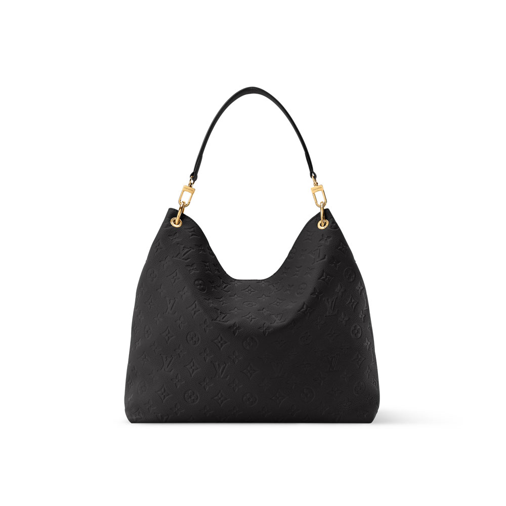 This timeless Louis Vuitton hobo features the iconic Monogram Empreinte leather in classic black. Its versatile design transitions effortlessly from day to night.