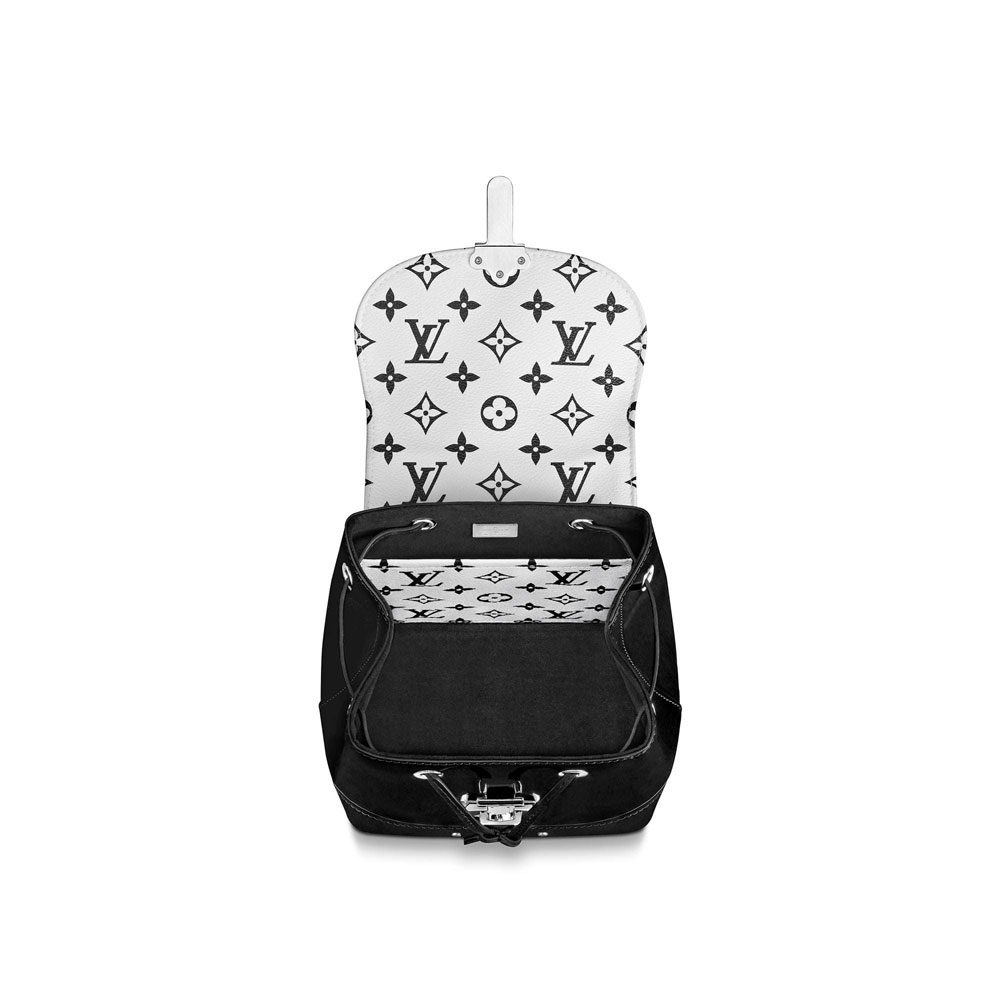 Updated for Summer 2019. the Hot Springs backpack is ideal for days when hands-free is the way to go. This fashion-forward model is crafted from smooth Vernis patent and the season's featured black-and-white Monogram canvas. The straps can be positioned in multiple ways. for ultimate ease of carry.