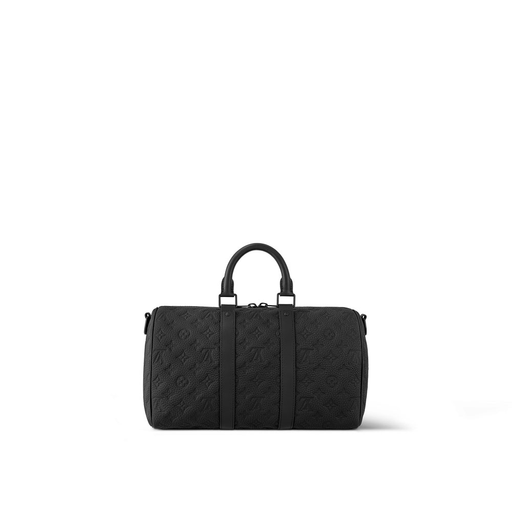 A smaller version of the Houses iconic Keepall weekend bag, the Keepall Bandouliere 35 bag is made from full-grain Taurillon cowhide leather embossed with the Monogram motif. This convenient everyday bag features all the Keepalls classic detailing, including lateral leather bands and leather top handles. Theres an adjustable and removable shoulder strap.