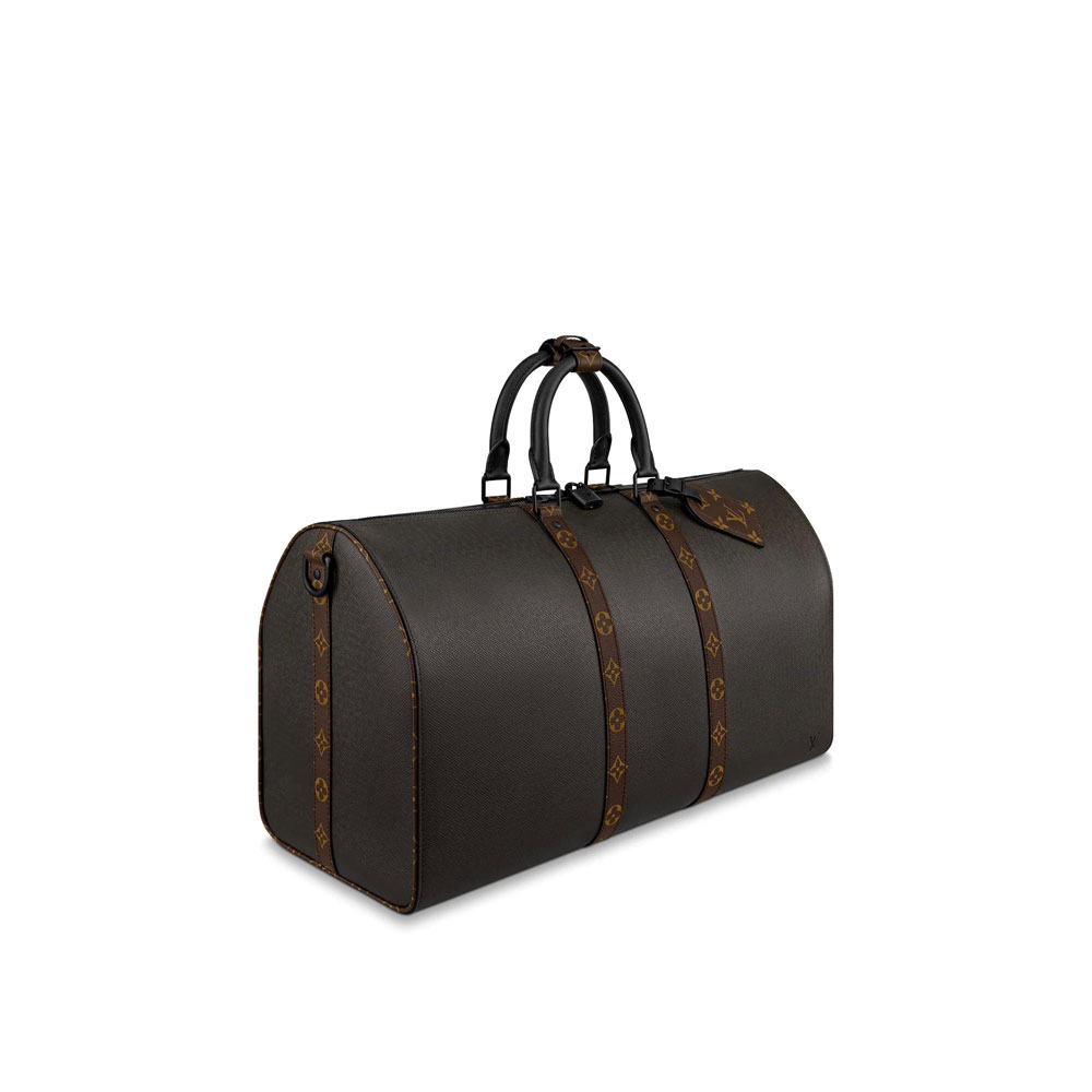 Designer Virgil Abloh has given the classic Keepall a contemporary twist in this new version for Fall-Winter 2020-21. Embossed Taiga leather in an original shade of khaki gives it an elegant aura. enhanced by signature touches like the Monogram decoration on the straps and name tag. A cabin-size bag with an interior optimized for maximum capacity.