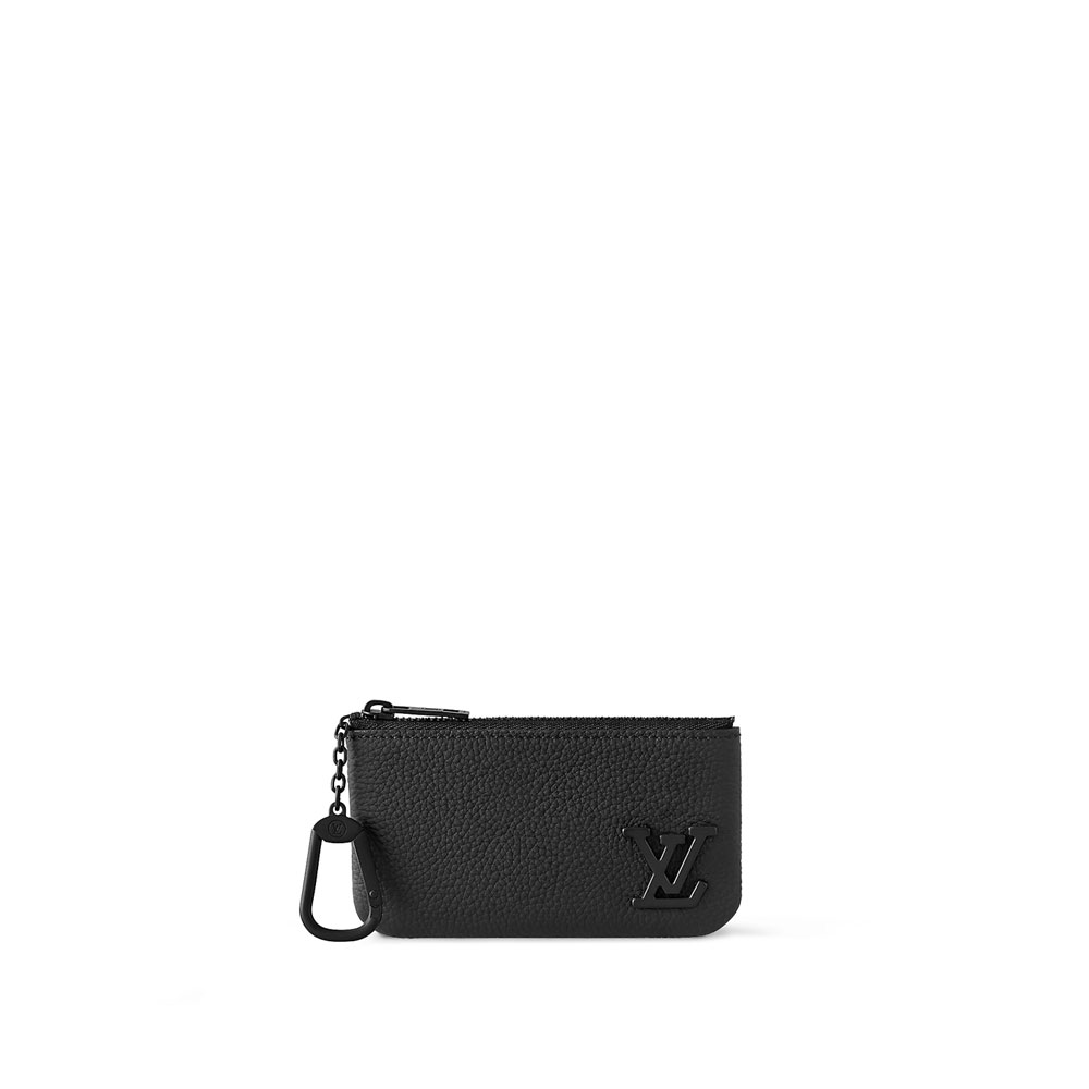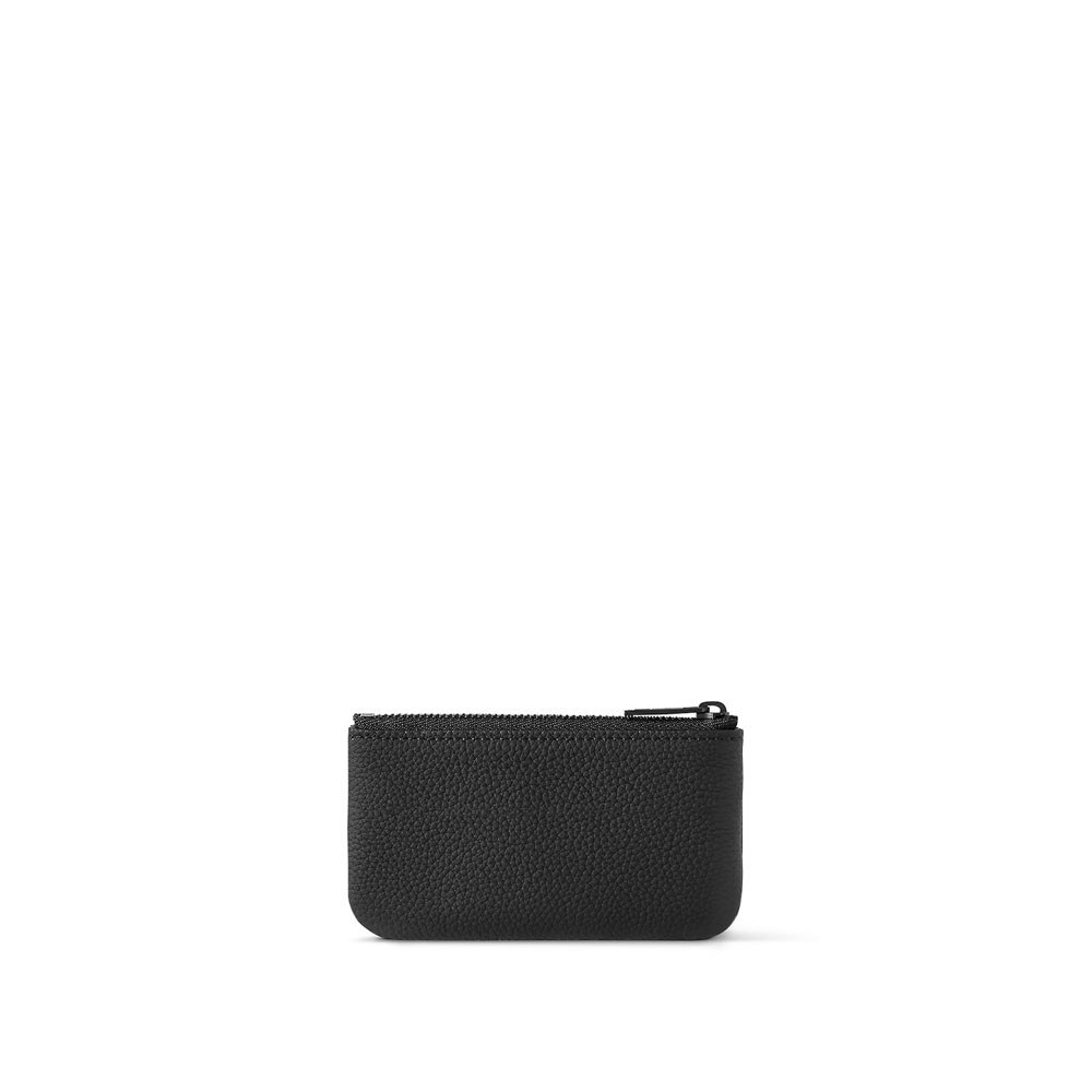 Compact and practical, the Key Pouch in elegant black Aerogram leather is ideal for men with classic tastes. The LV initials in matching black metal add a subtle signature touch. Perfect for carrying coins and cards as well as keys, it fits snugly in a pocket, or can be clipped to a larger bag with its handy chain and hook.