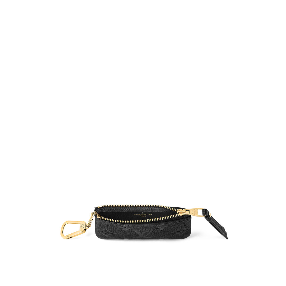 Crafted from supple Monogram Empreinte leather, which is embossed with Louis Vuitton's signature Monogram pattern, the Key Pouch combines elegance and practicality. More than a key holder, it can also carry cash and cards thanks to its secure zip closure. Its hook and chain enable it to be attached to a bag or belt.