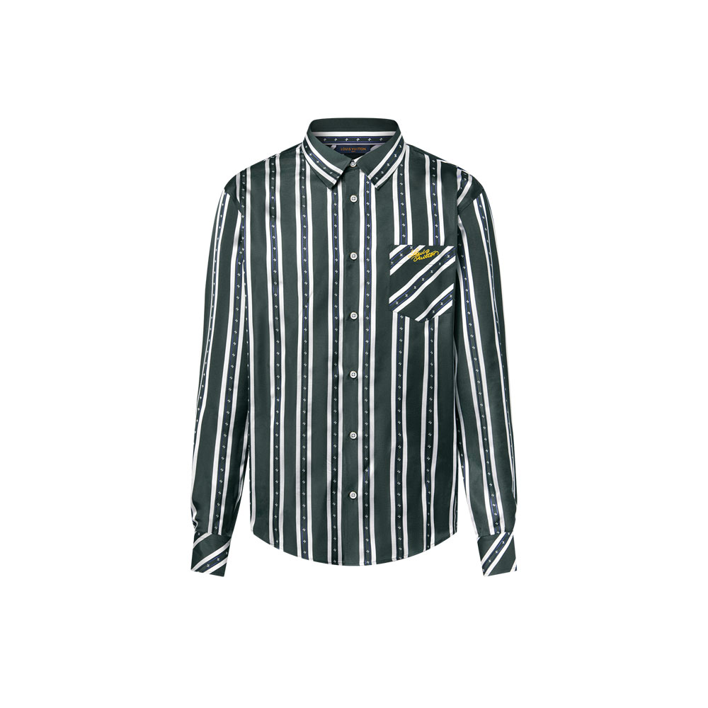 This vertically patterned silk shirt, crafted from Louis Vuitton's signature cloth material, effortlessly blends heritage and modernity. Pair it with tailored charcoal trousers and polished leather loafers for a sharp, business-ready look.