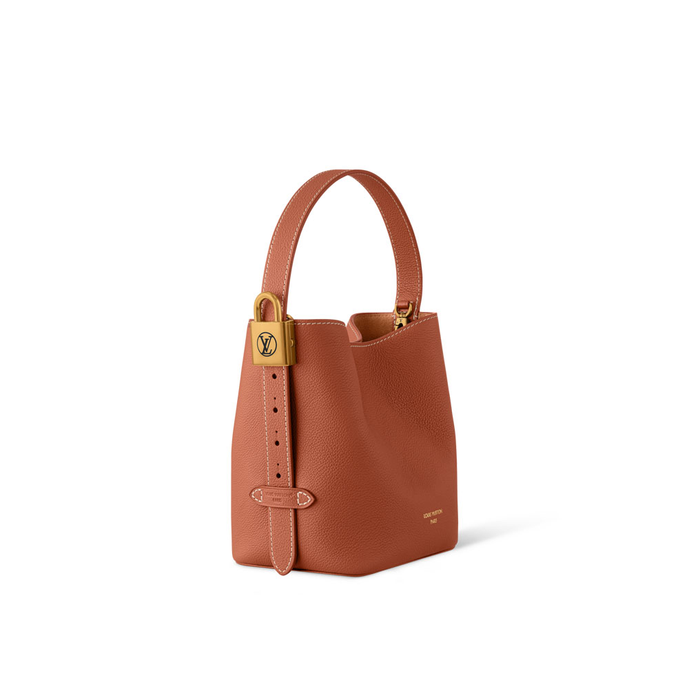 The design includes the classic LV lock and a removable pouch adorned with the signature Monogram pattern.