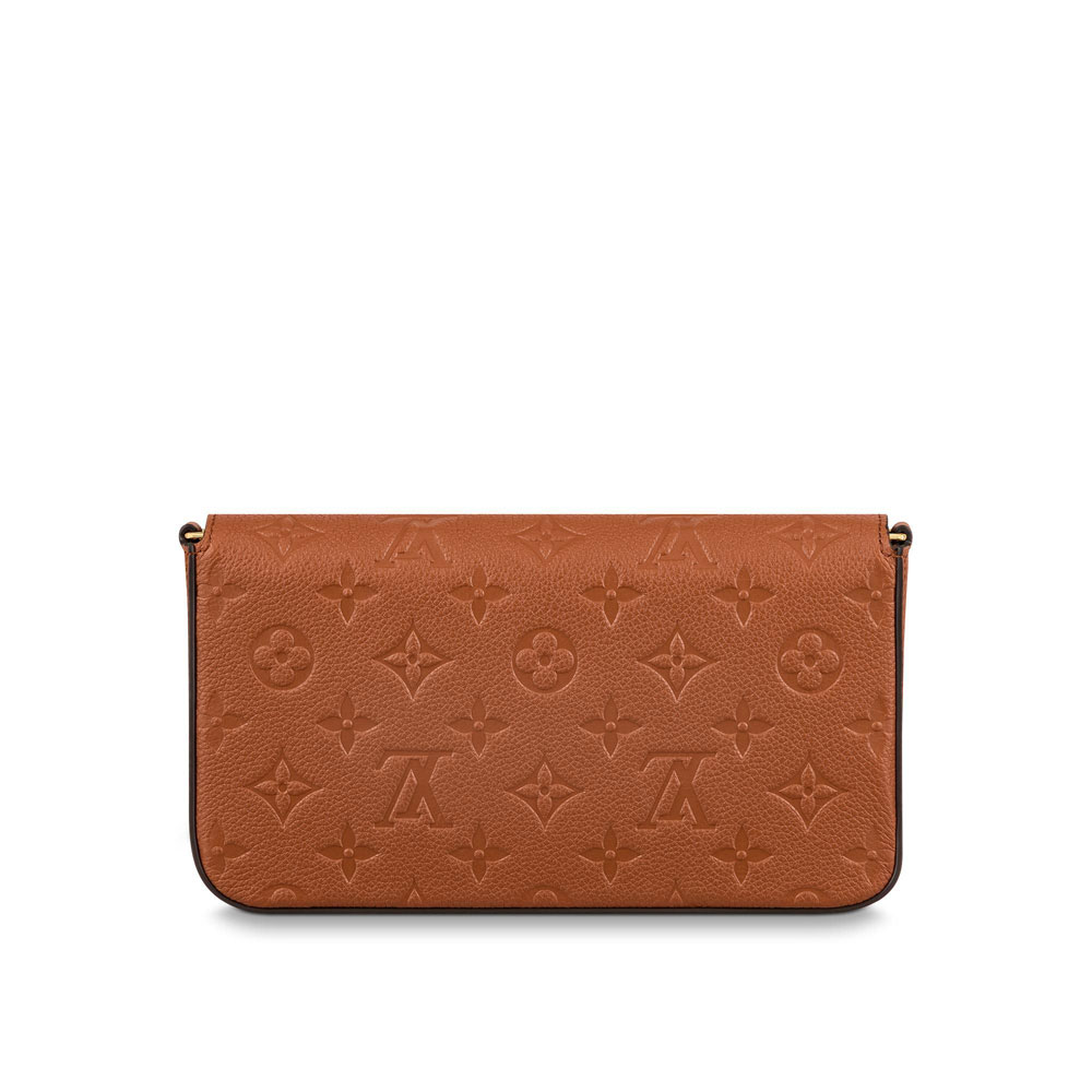 This edition of the Felicie Pochette is crafted from supple. grained Monogram Empreinte leather. which is embossed with Louis Vuitton's signature Monogram pattern. This feminine. envelope-style pouch is extremely versatile. offering two removable pockets for valuables. Its removable. gold-tone chain enables it to be carried as either a shoulder bag or a clutch.