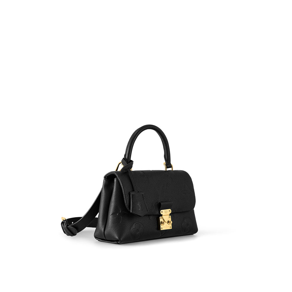 Made from Monogram Empreinte leather. with an oversized Monogram pattern embossed into the leather. this Madeleine BB handbag is a study in elegance. The single. articulated top handle brings a feminine elegance to the bag while the detachable strap enables shoulder and cross-body carry. It's signed with the House's classic key bell and S-lock.