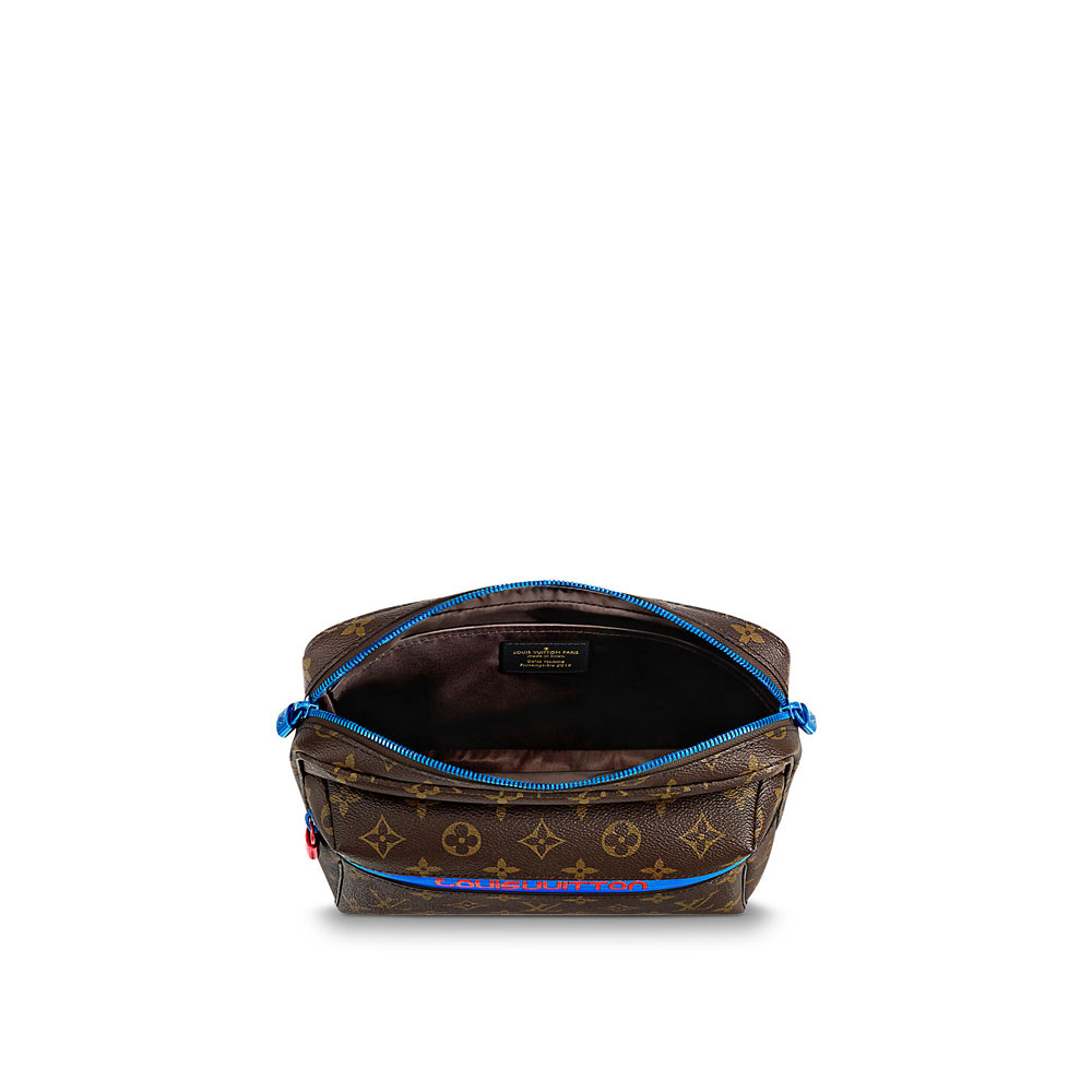 Featuring the new technical, sports-inspired feel unveiled by Kim Jones at the 2018 Spring-Summer Show, this Messenger Monogram Outdoor �mixes classic Monogram coated canvas with sports webbing, scuba zips, cording and blue and green colored metallic pieces. Easy and functional crossbody shape.