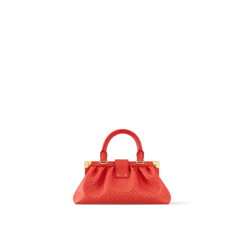 Part of the new Nanogram capsule. the Monogram Clutch is offered in supple calfskin. embossed with a whimisically proportioned Monogram pattern for a subtle two-tone effect. When the rotating handle mounts are tucked inside the bag. they become invisible. turning this bag into an elegant hand-carry purse.