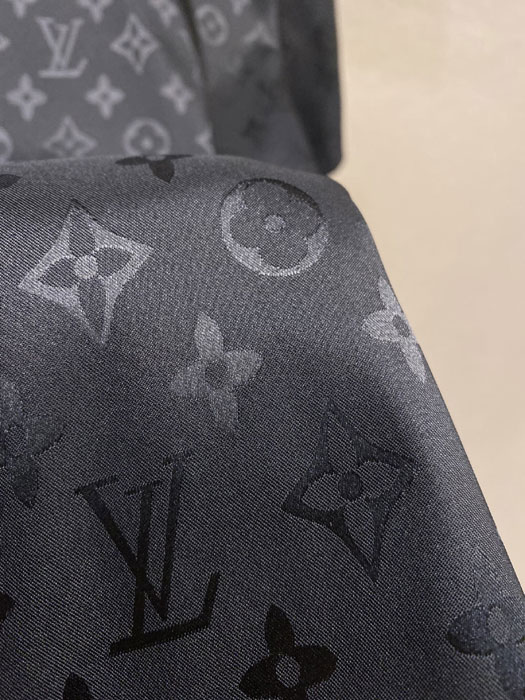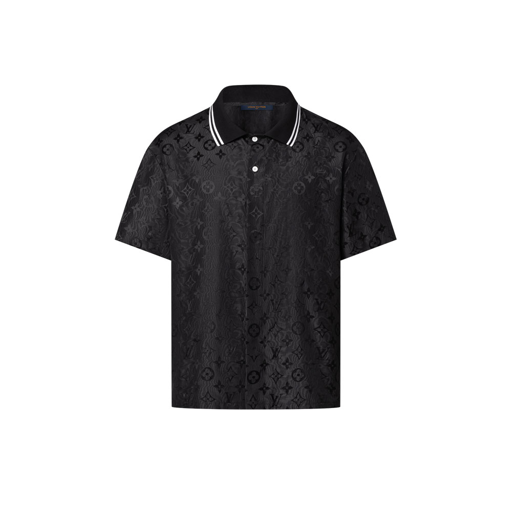 Louis Vuitton Monogram Moire Jacquard Short-Sleeved Silk Shirt in Black effortlessly transitions from day to night. Pair it with slim-fit tailored trousers and leather loafers for a refined evening ensemble, highlighting the shirt's luxurious silk and subtle jacquard motifs.