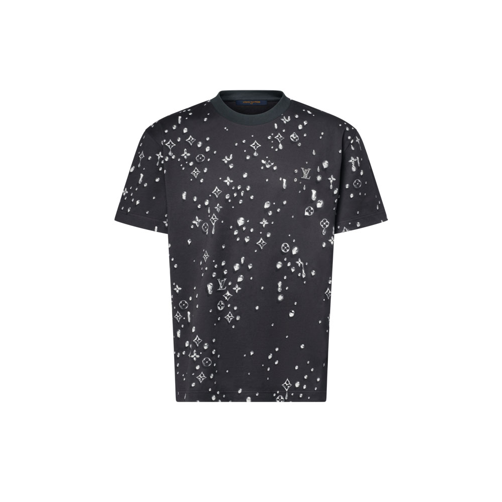 Louis Vuitton's iconic Monogram gets a fresh twist with this stylish short-sleeved T-shirt. Crafted from premium organic cotton jersey, the black tee features a playful trompe l'oeil waterdrop design with glittering rhinestone accents.