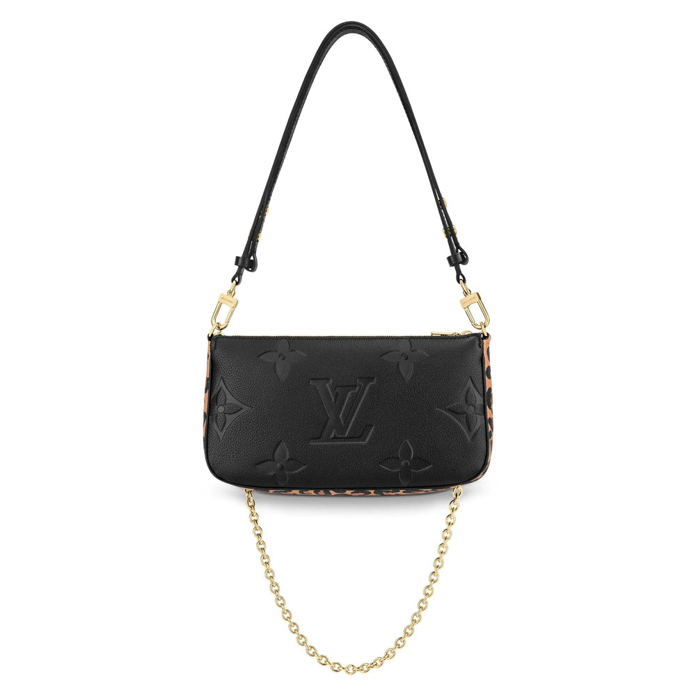 The Multi Pochette Accessoire is revisited in Monogram Empreinte leather. embossed with a glossy. oversized Monogram motif. Part of the Fall 2021 Wild at Heart capsule. this model sports touches of leopard print on its sides. for a sophisticated allure. The adjustable and removable strap and detachable pouch make the bag as versatile as it is elegant.