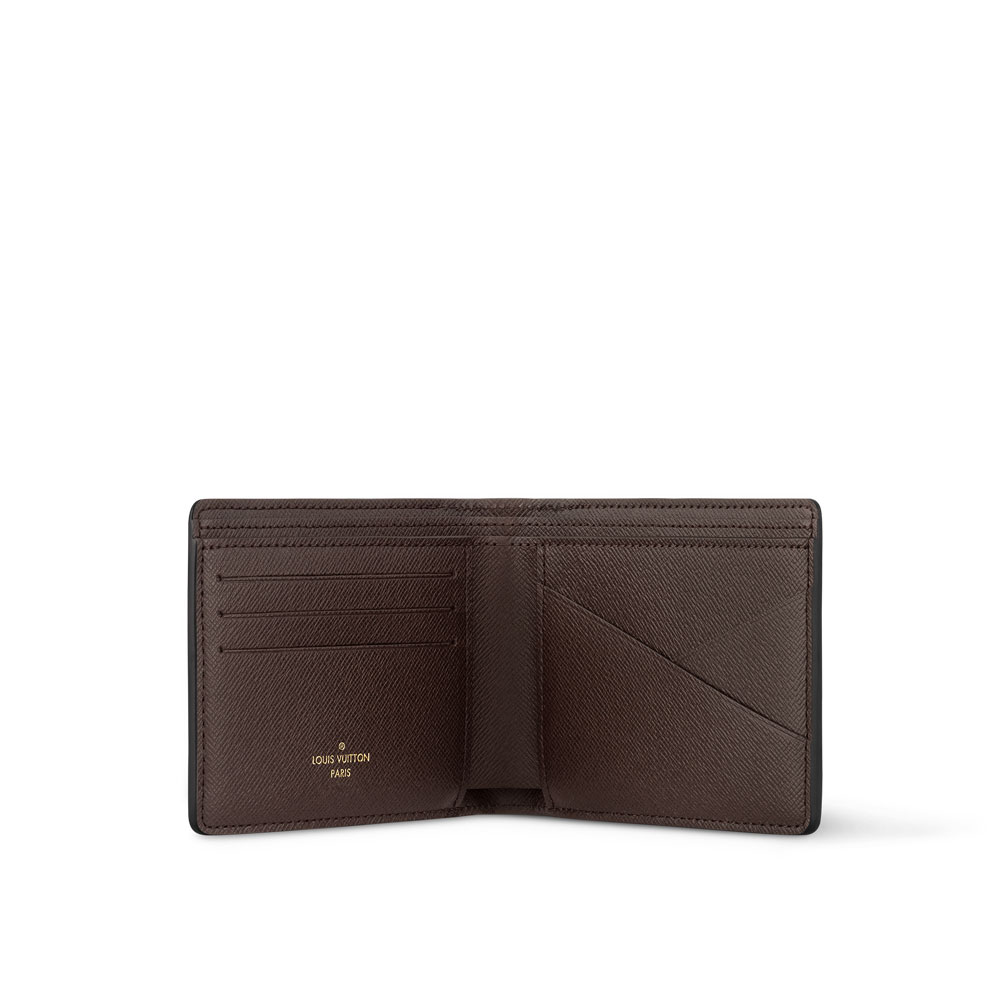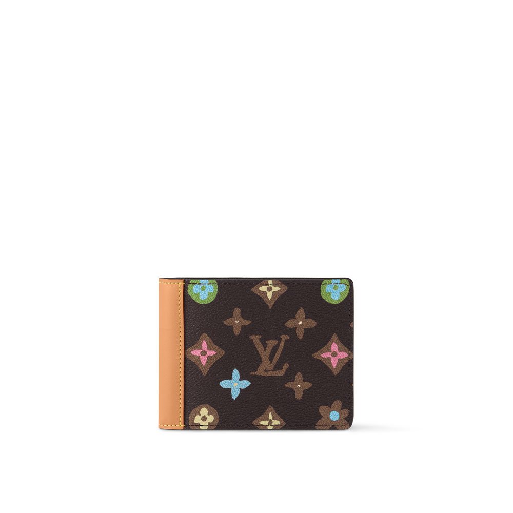 At first glance, this Multiple Wallet appears to be made from a colorful variation of the classic Monogram, but closer inspection reveals an irregular treatment of the Monogram Blossoms and LVs. Whats more, there are daisies and terrier dogs included in the pattern. This is Monogram Craggy canvas and it looks great on this practical wallet.