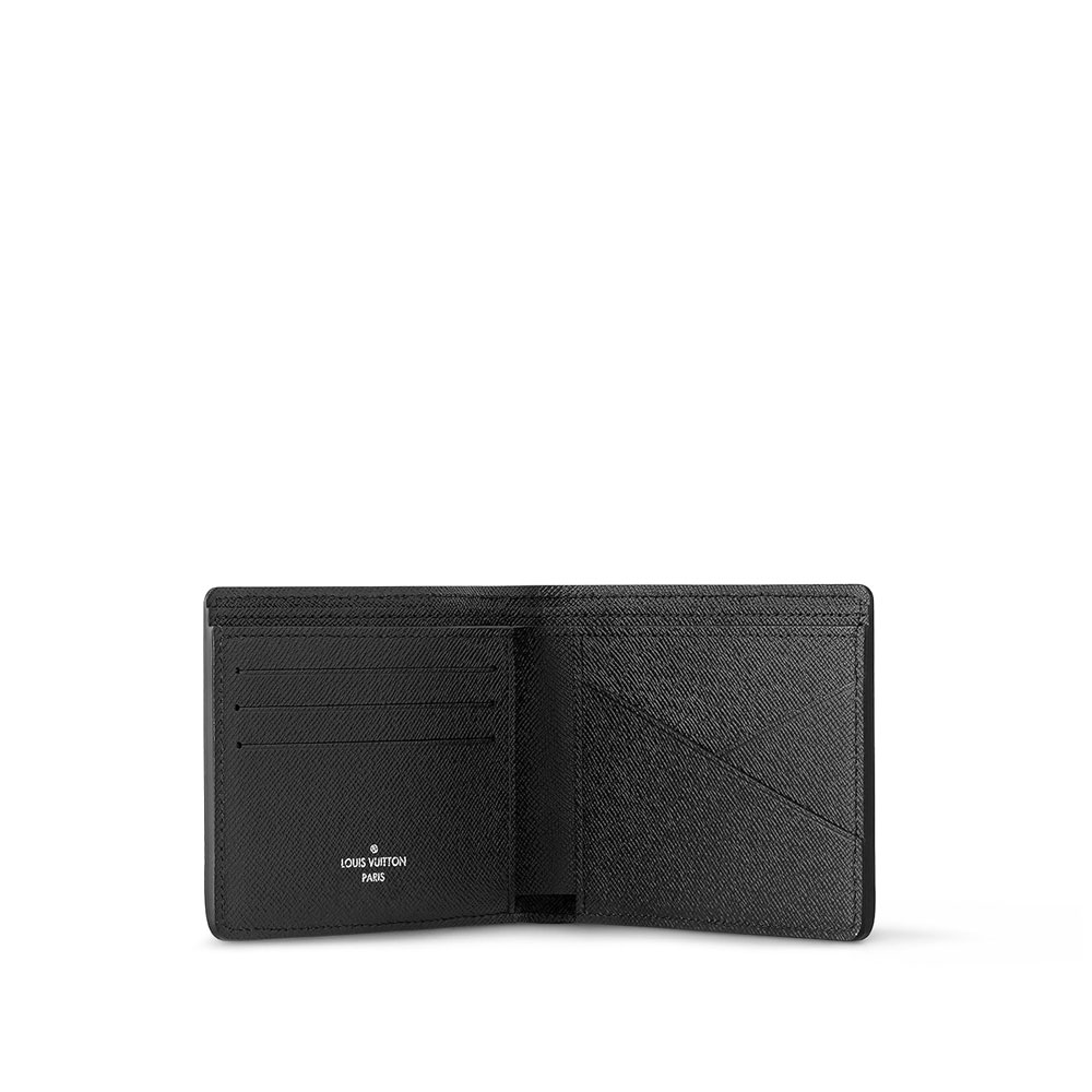 Crafted from the Houses embossed, double-tone Taiga leather, the compact Multiple wallet is equally elegant and practical. This supple yet durable accessory is fitted with numerous card slots as well as two compartments for tickets and bills. The silver-tone LV Initials add a discreet signature touch to the piece.
