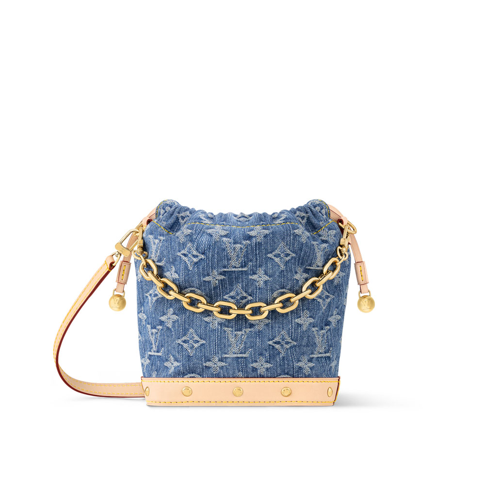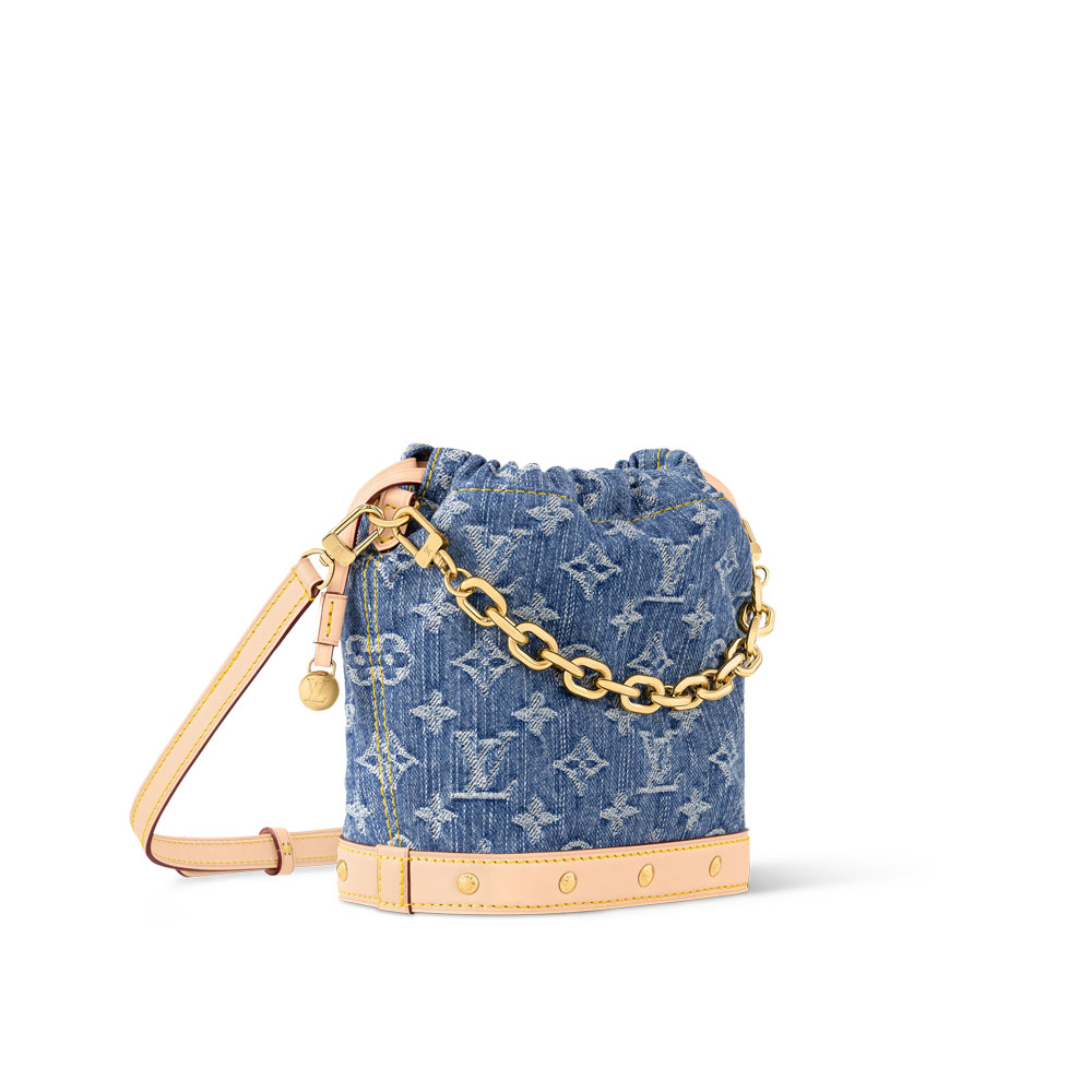 The Louis Vuitton Nano Noe Monogram Denim in Blue is a versatile accessory that pairs beautifully with various outfits. For a casual yet chic look, style it with a white linen dress and strappy sandals.