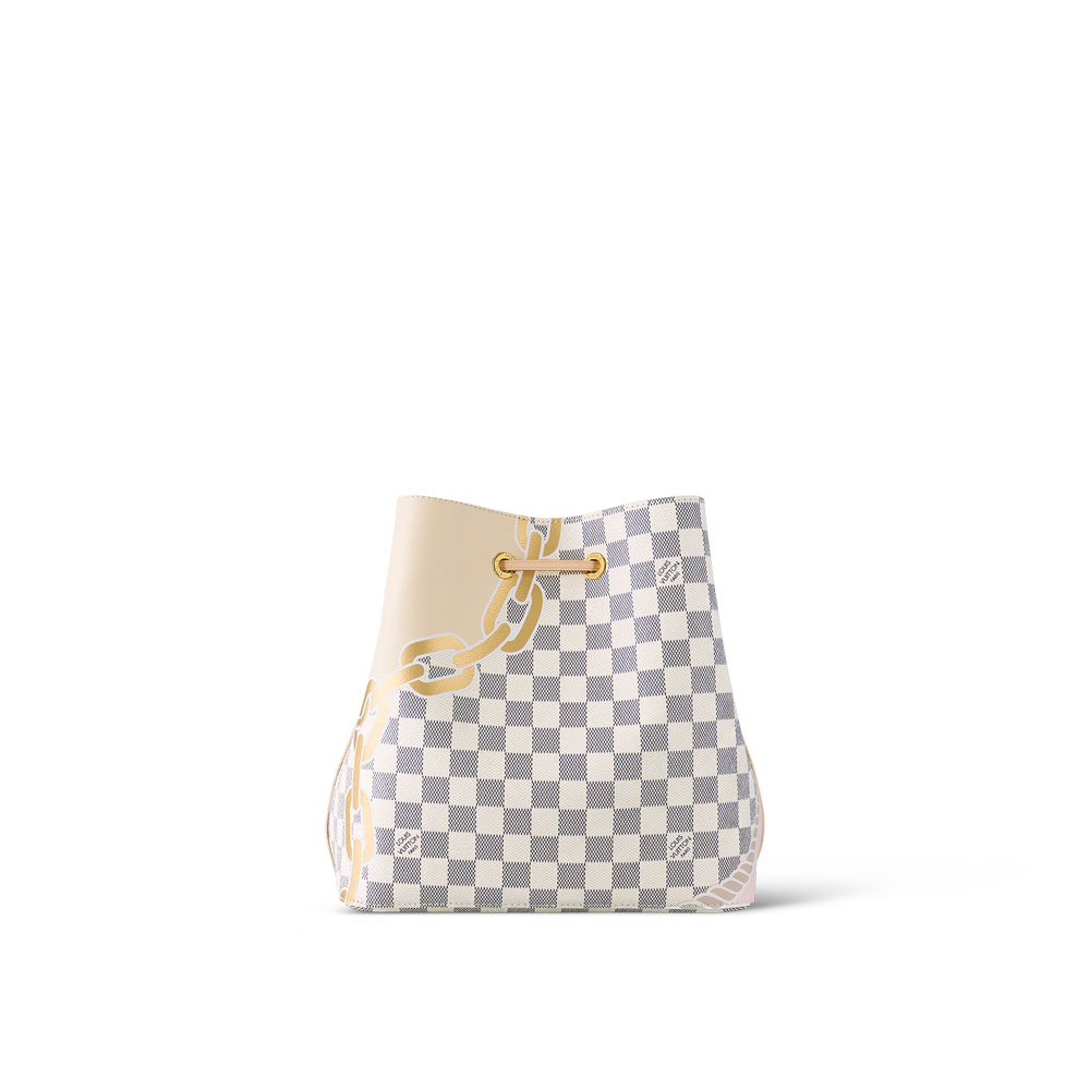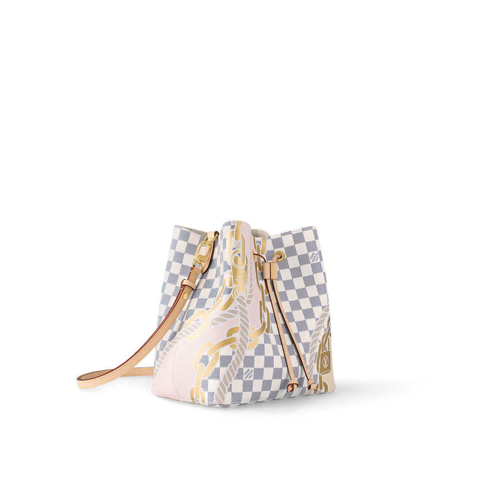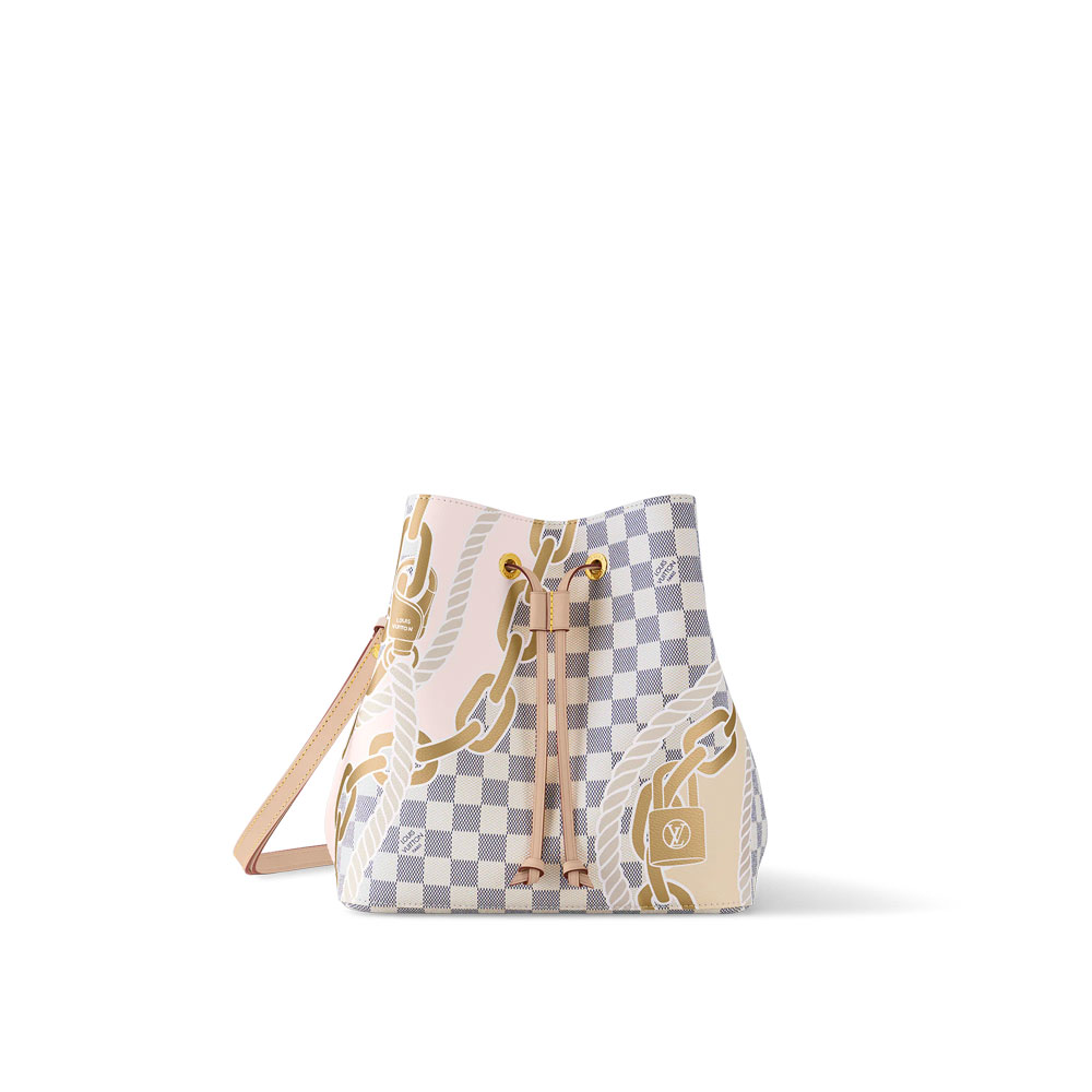 The body-friendly NeoNoe MM bucket bag takes on a summery feel in Damier Azur canvas. livened up with a bold yet feminine nautical print of ropes and chains. The bag's strap can be adjusted for long- and short-shoulder carry as well as cross-body wear. The inside zipped pocket keeps belongings secure.