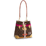 The trompe l'oeil screen prints of trunk corners and historic locks that adorn the supple Monogram canvas make this NeoNoe a playful twist on LV heritage. As always, this is an on-trend bucket bag with an adjustable strap that lengthens for a modern, cross-body carry.