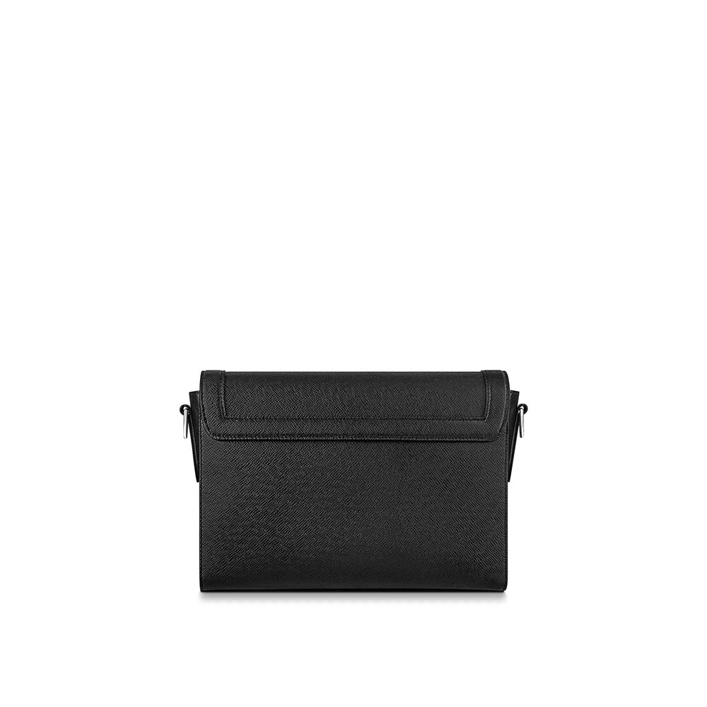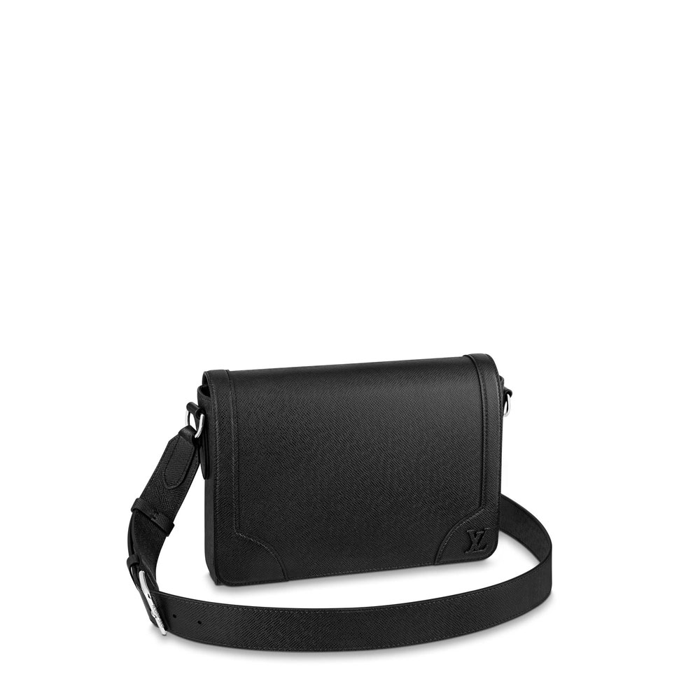 Styled in richly embossed Taiga leather. the new Flap Messenger offers an original distinctive touch: reinforced corners in a different shade of black. recalling Louis Vuitton's heritage as a trunk maker. The LV initials in tone-on-tone metal add a subtle signature accent. With its body-friendly design and adjustable strap. it's the ideal everyday bag for today's active man.