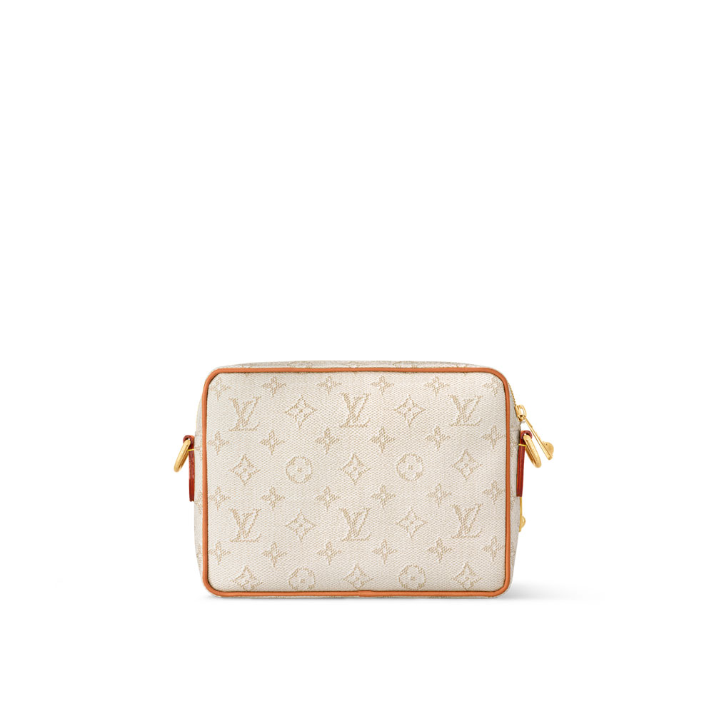 Designed with vintage charm by Pharrell Williams, this stylish cross-body piece uses Monogram Heritage coated fabric in maritime hues.