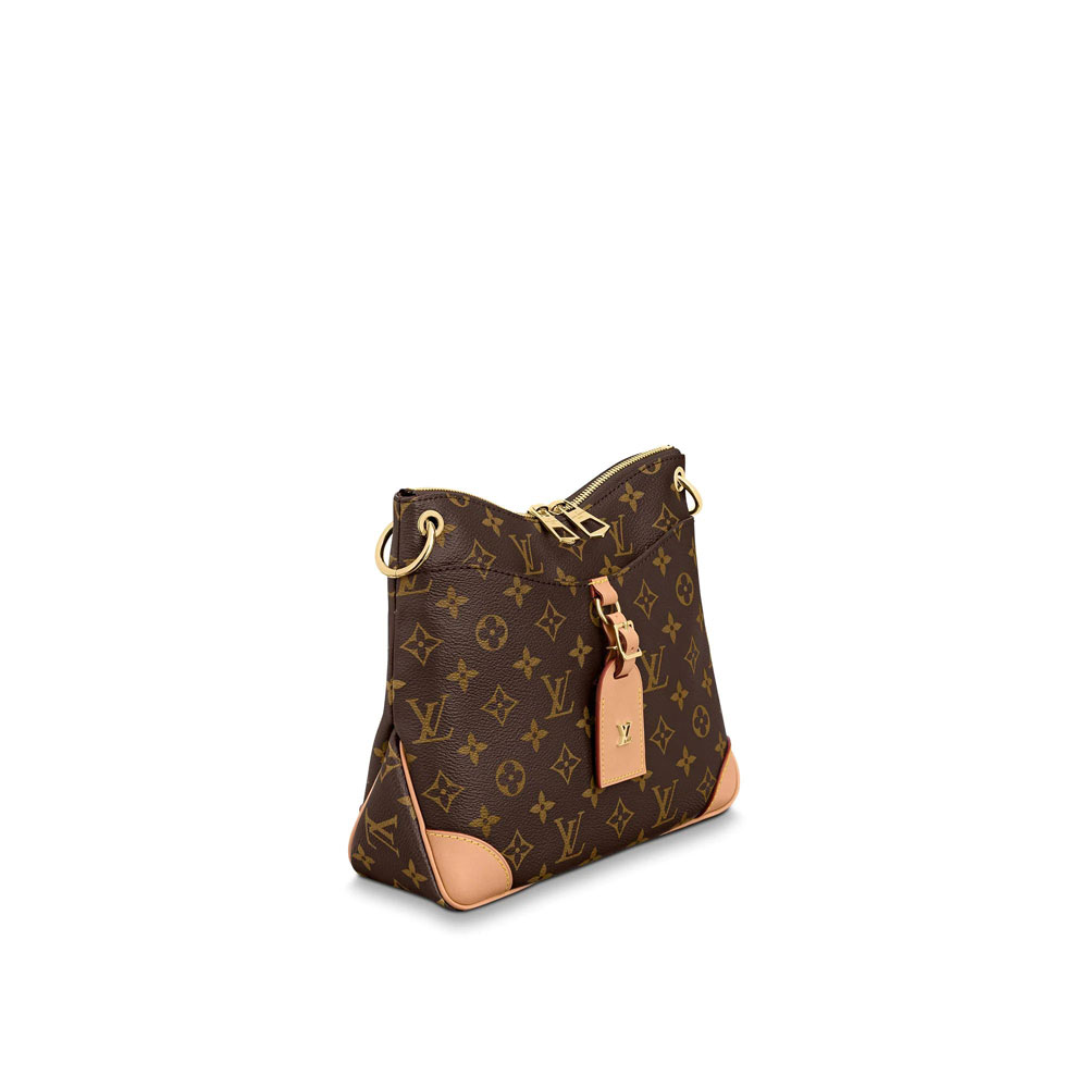 For Fall-Winter 2020. Louis Vuitton introduces the new Odeon PM. a stylish and functional shoulder bag. Made from Monogram canvas. this new zipped besace evokes the House's heritage with its natural-leather name tag and reinforced leather corners. A surprisingly roomy interior make it practical while an adjustable leather strap allows comfortable shoulder or crossbody wear.