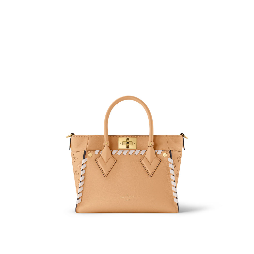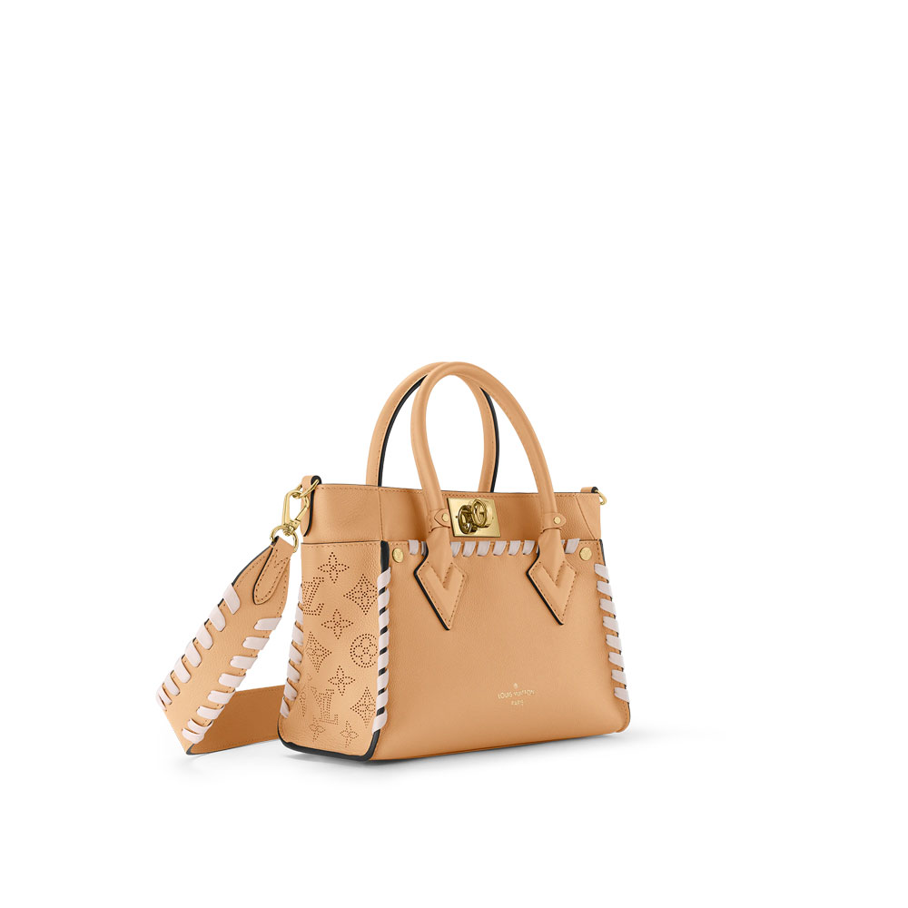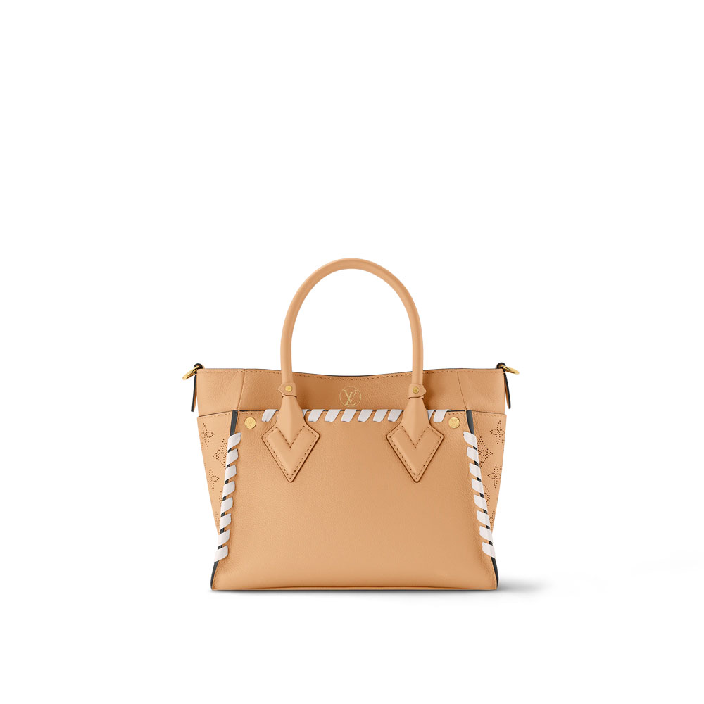 Crafted from supple calf leather. with a perforated pattern of Monogram Flowers and LVs on the sides. this On My Side PM handbag features hand-braided detailing. on the front. back and on the leather strap. Structured enough to wear with business or dress clothes. it brings style to any casual look.