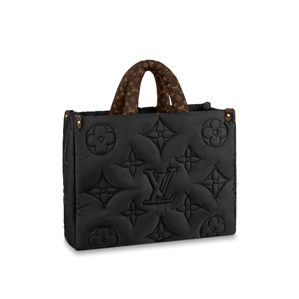 Fashioned from Econyl regenerated nylon. this OnTheGO GM tote bag is a testament to Louis Vuitton's EcoDesign mindset. The Econyl is embroidered with the Monogram pattern for a padded. sporty-chic feel. This spacious tote is perfect for business. shopping or travel. Long shoulder straps and two top handles permit comfortable carry options.
