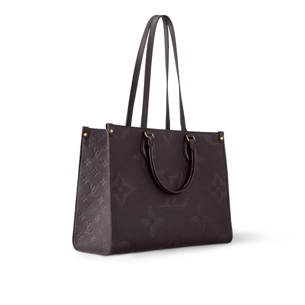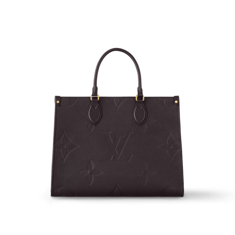 Experience the Louis Vuitton OnTheGo: This iconic design features luxurious embossed leather with golden accents.