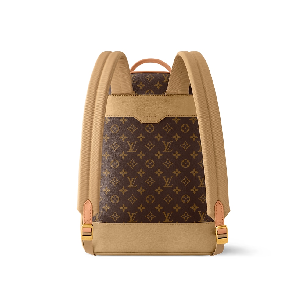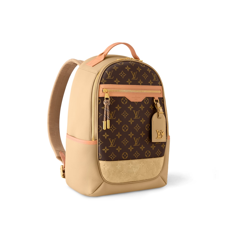 The combination of beige grained leather with embossed suede details and Monogram canvas gives the Outdoor Backpack an elegantly sporty look. The rounded zipper gives easy access to the spacious main compartment. A zipped pocket on the front and two side pockets bring added functionality while the cord zip-pull adds a touch of modernity.