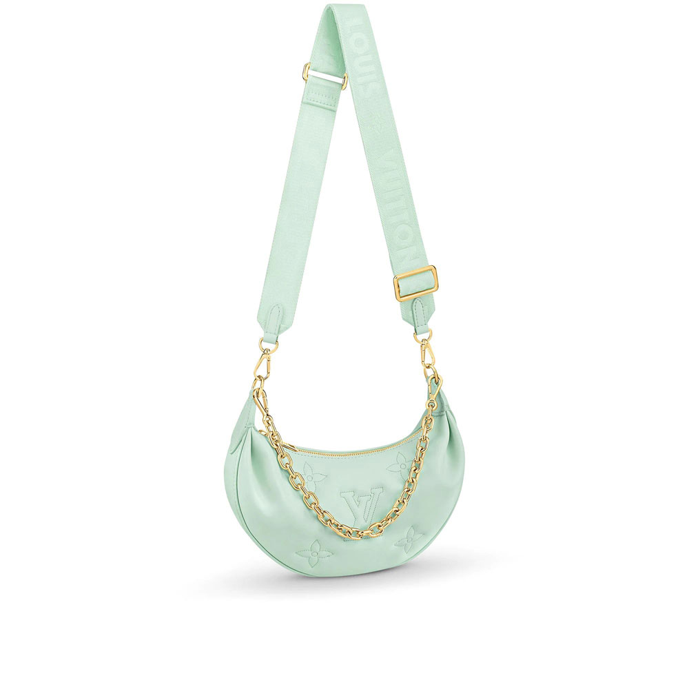 Inspired by dreamy summer hues. the Bubblegram capsule brings two new vibrant shades to the Over The Moon handbag in quilted calf leather with an embroidered Monogram pattern. The adjustable strap and gold-color chain enable elbow. short-shoulder. cross-body. and long-shoulder carry. The strap can even be detached and the bag carried as a clutch.