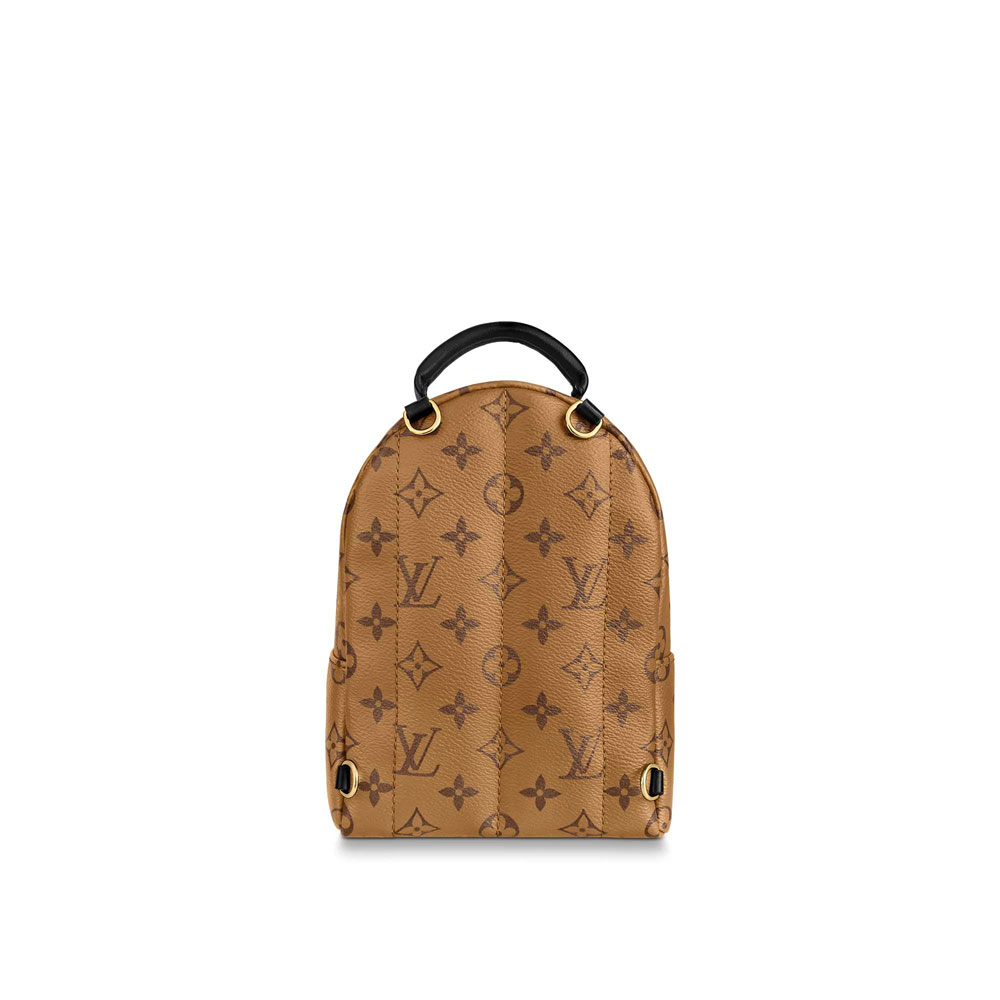 The Palm Springs Mini gives a fresh twist to the backpack. transforming a utilitarian staple into an on-point city bag. An essential accessory for sporty urban nomads. this charming model is crafted from Monogram Reverse canvas with soft leather trim and gold-tone hardware. The quilted. foam-backed straps can be positioned in multiple ways. for shoulder or cross-body wear.