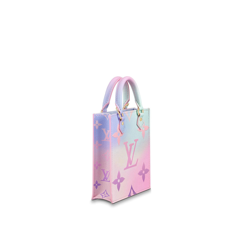This special edition of the Petit Sac Plat is part of the Spring in the City collection. It comes in Monogram canvas printed with a color gradation inspired by the pastel hues of the sunrise. Lightweight and surprisingly spacious. this miniature replica of the iconic Sac Plat features a coordinating leather shoulder strap as well as two top handles.